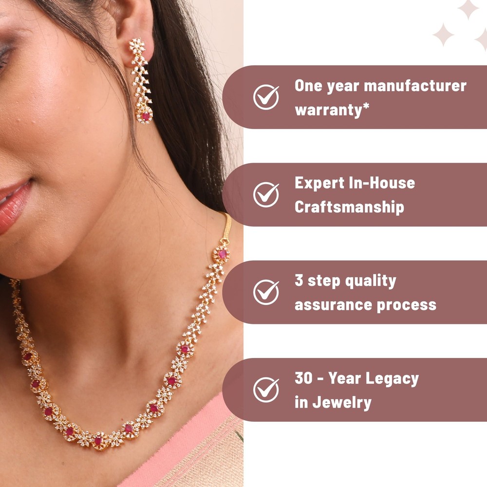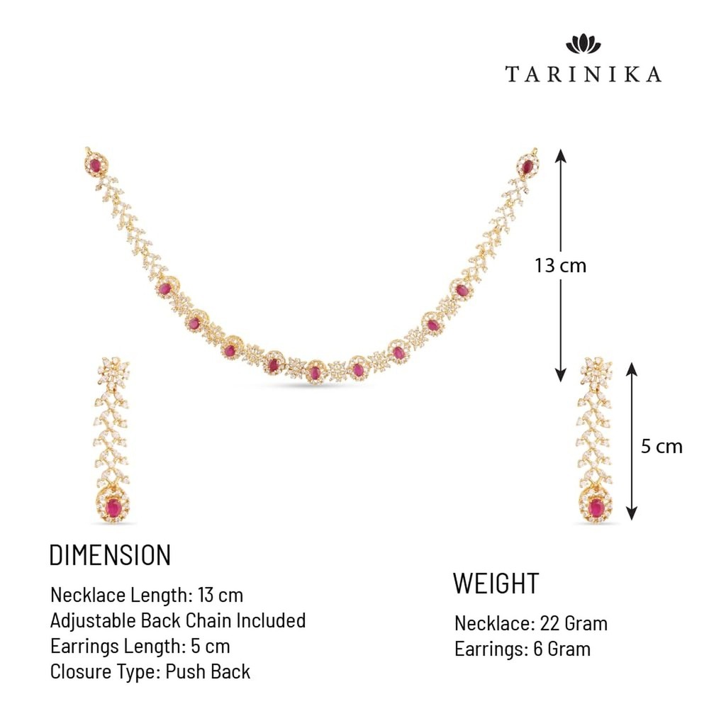 TARINIKA Yellow Gold Uri Delicate CZ Short Necklace with Floral Design - Jewelry Set for Women Perfect for Casual Occasions | Indian Jewelry Sets for Women | 1 Year Warranty* Product Details Color: White Red Brand: TARINIKA MPN: Does not apply UPC: Does not apply EAN: Does not apply Department : womens Date First Available : May 16, 2023 Brand, Seller, or Collection Name: TARINIKA Metal: Brass Material: Gold-Plated brass Gem Type: Cubic Zirconia Clasp: Fishhook Clasp Number of stones: 280