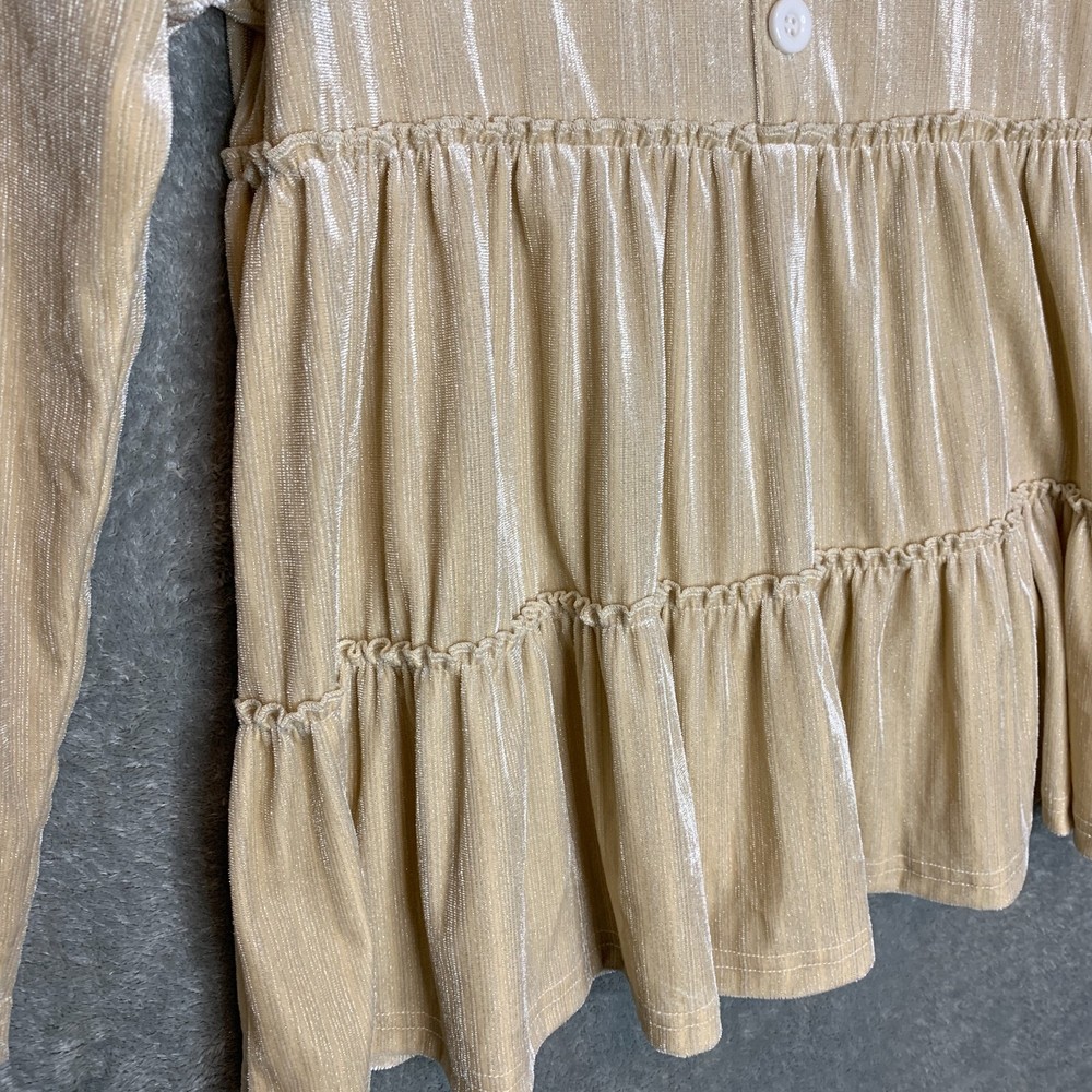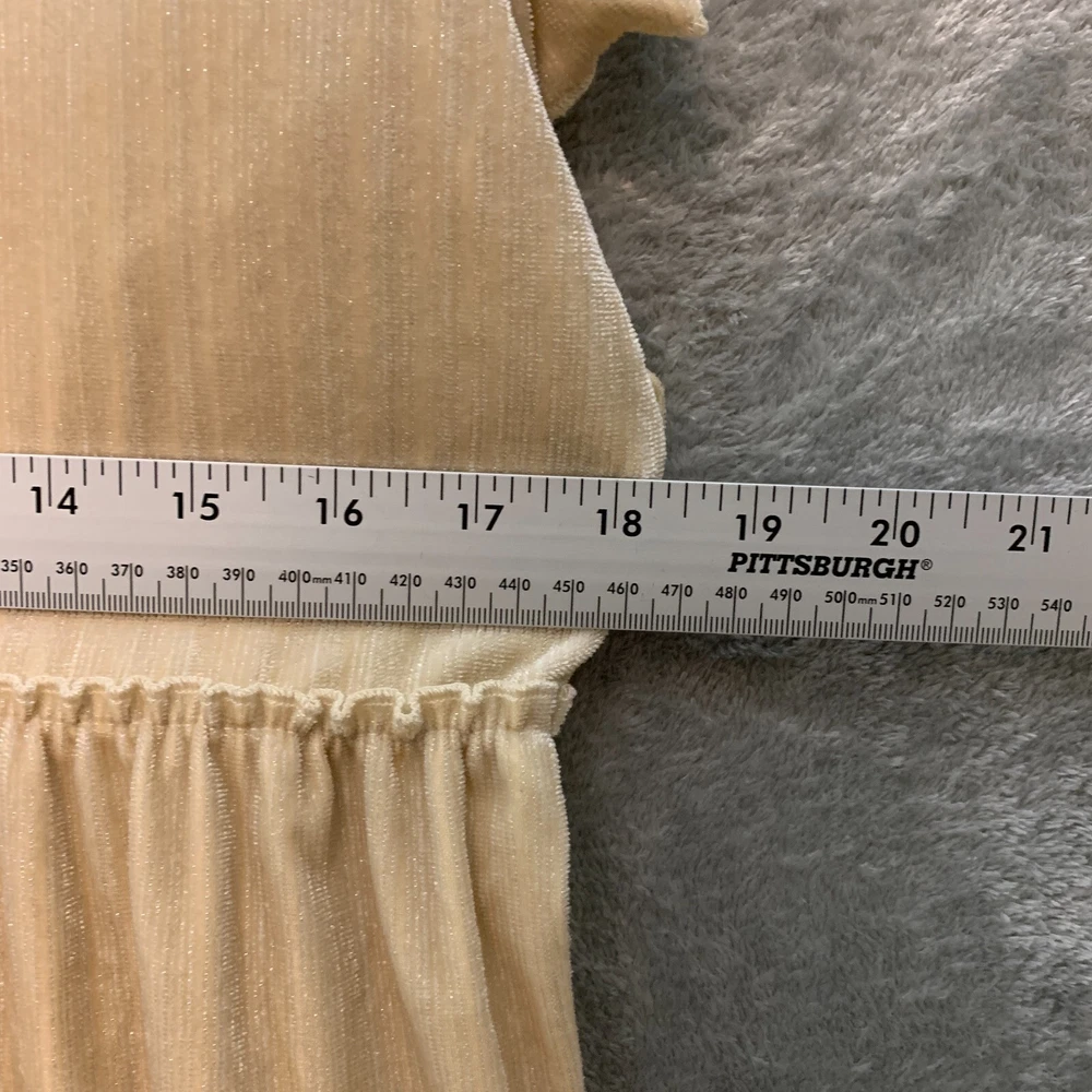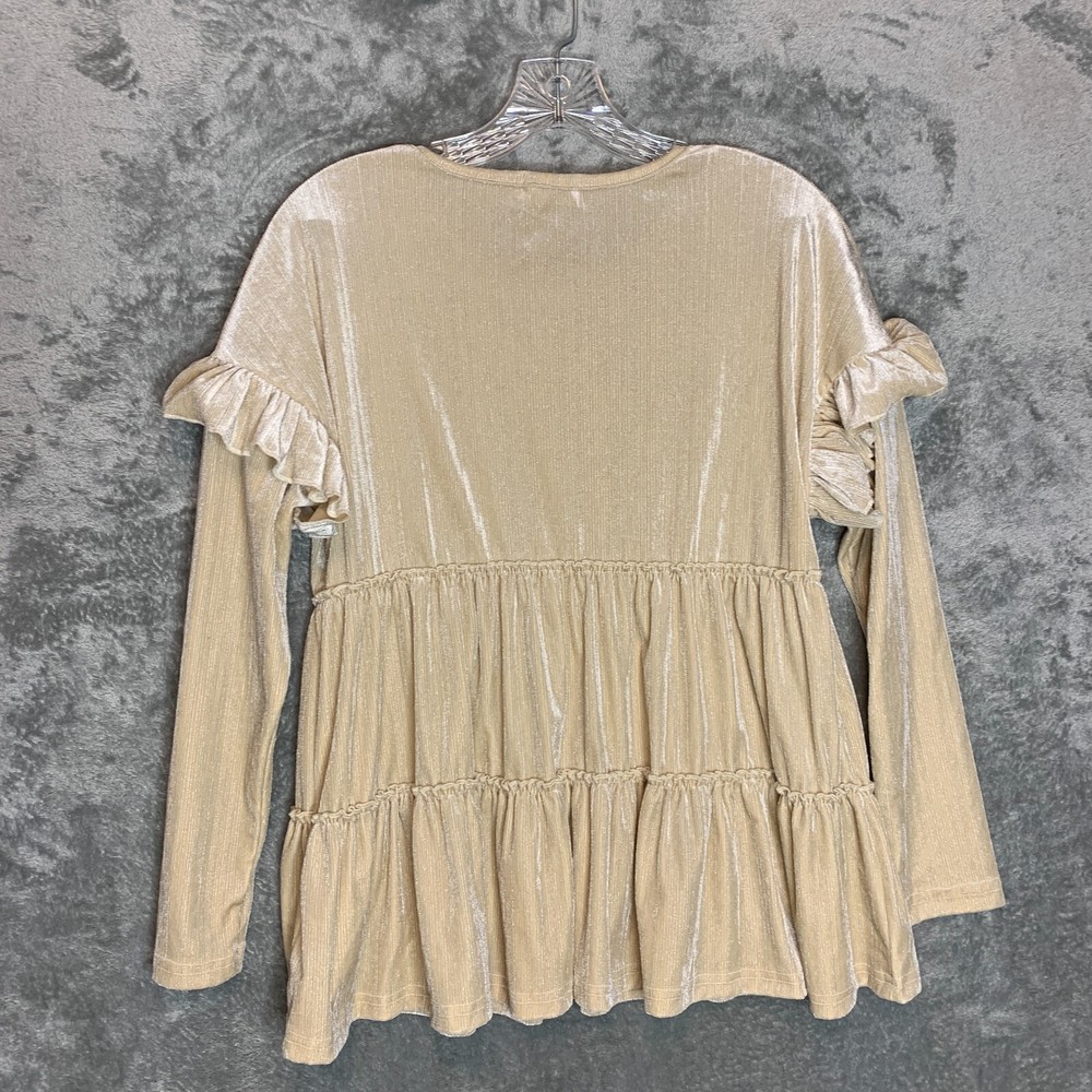 Good Pre Owned condition. Please see photos for details. SUPER FAST SHIPPING!!! We ship next business day! If you aren't happy with your purchase we offer 30 day FREE returns. No questions asked! Women Classic Cream Coquette Babydoll Girly Ruffle Tiered Soft Velvet Top S