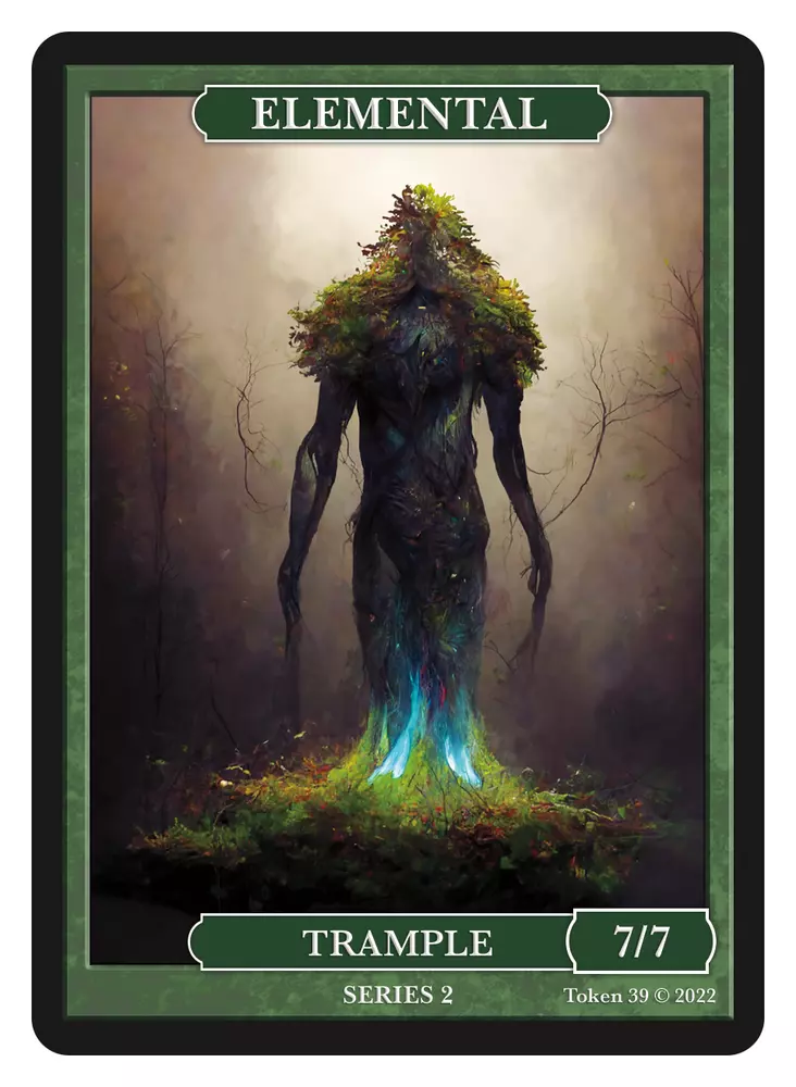Elemental 7/7 Token Digital art created by me using Mid-Journey This is token #39 in the series = SERIES 2 This token is limited to a print run. Once they are sold out the image will be retired forever and new art commissioned. Made the same Thickness as a Magic card Printed on quality 300GSM paper for the same feel as a Magic card Can be sleeved in perfect fit and double sleeved. See my other listings for the rest of the tokens in this series Look for them on Facebook under "Givememana's Tokens" I do combine shipping charges. At Checkout there should be an option to request total from seller. Or I can refund after you purchase. Just send me a message. Unfortunately Ebay doesn't proved a better method that I am aware of. Thank you.