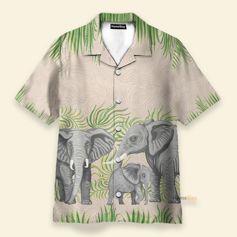 Elephant Family Tropical Plants Pattern Hawaiian Shirt