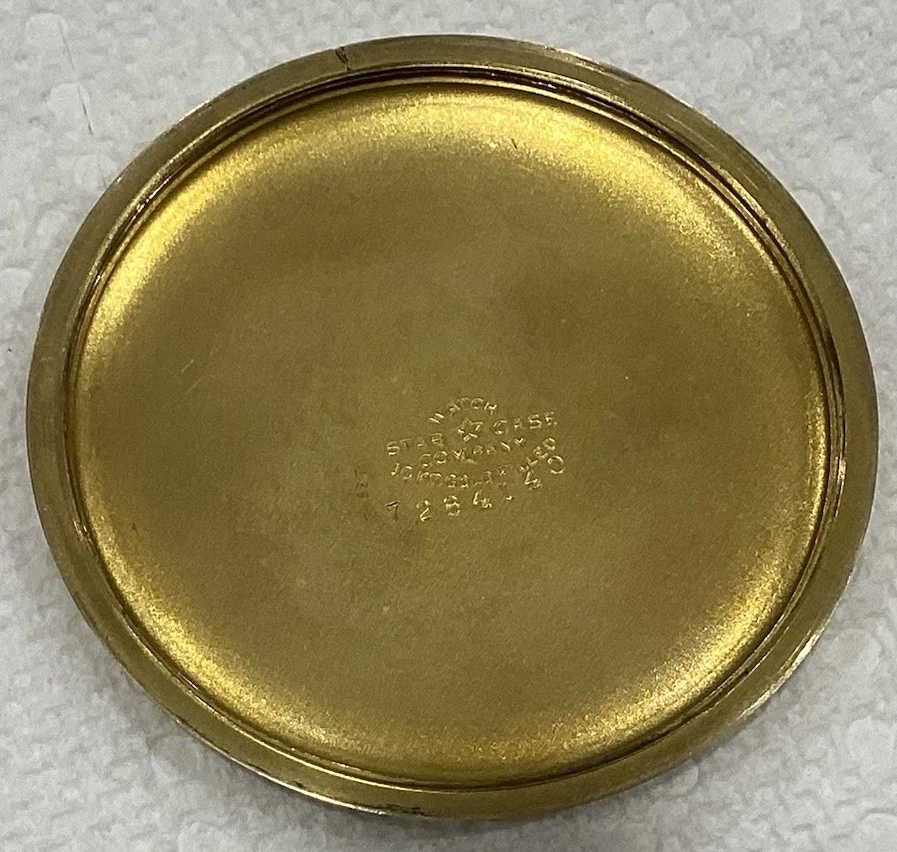 For your consideration is this circa 1921 Elgin Father Time Grade 454 Model 15 Railroad Grade 21 jewel, size 16, open face, lever set, adjusted to 5 positions Men’s pocket with Simmons watch chain. The case and movement are both in good preowned condition with normal wear from age and use, the case has some light scratching as does the crystal but the plating is strong and I see no dents. The porcelain or enamel dial looks great with no damage. The case is marked “STAR WATCH CASE COMPANY 10 KT. GOLD FILLED , see photos. The Simmons chain is marked “SIMMONS” and is n good condition. The watch itself has been running and keeping time but I have not had it cleaned or tested for exact timing so as always it may need adjustment after shipping. Check out all of the photos for the best description and ask questions if you have them. Please check my other listings as I will be listing several Railroad Grade Pocket Watches from the estate of a collector. The serial number on this pocket watch is “23128793”. My shipping charge includes insurance for the final value realized on the watch and I pack very securely. Thanks for looking and good luck should you decide to bid.