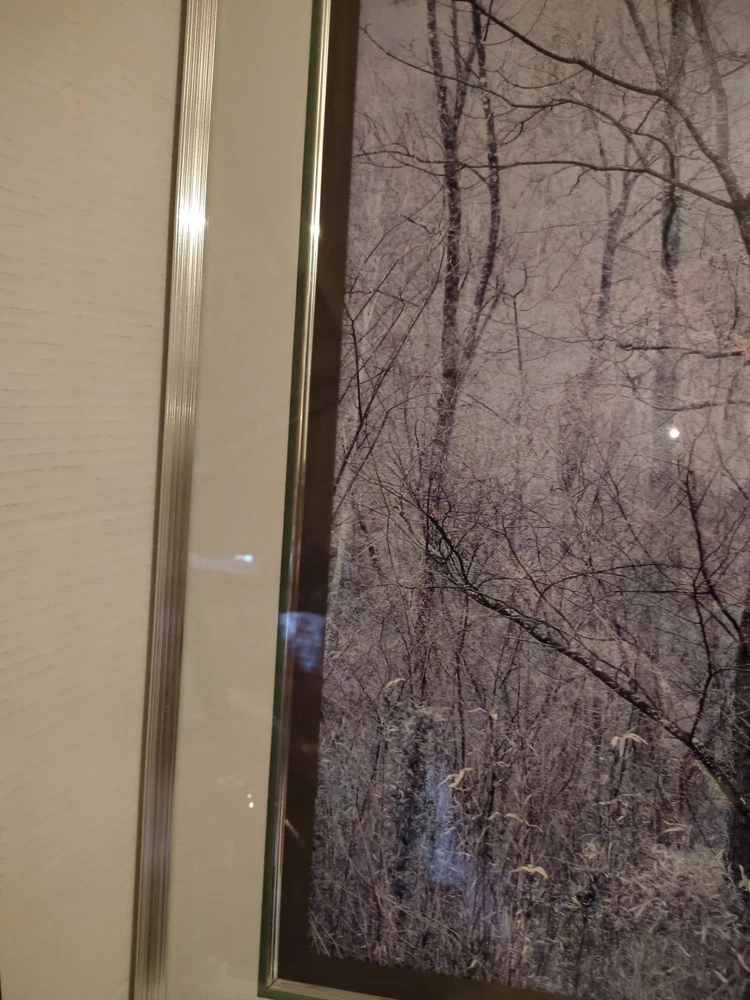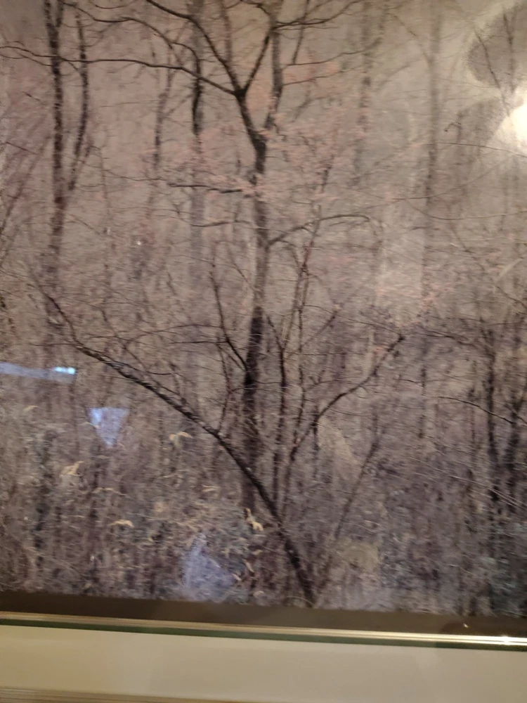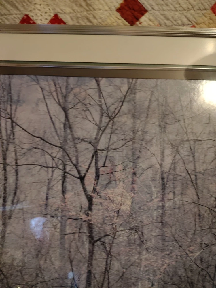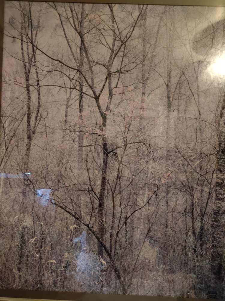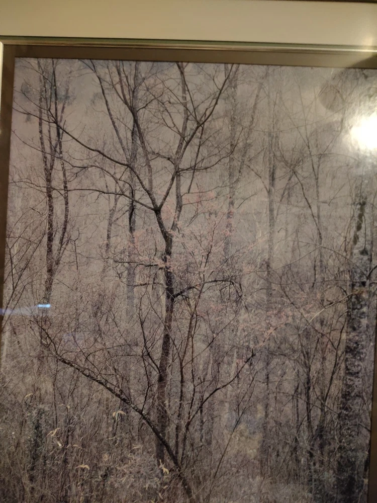 This beautiful scenery done by Elliot Porter is a print part of the intimate landscape series this is redbud tree in bottom land Red River gorge Kentucky it was taken in 1968 it has formattings professionally framed by creative framing and laser art gallery in Canton Ohio it is a beautiful beautiful scenery I must see
