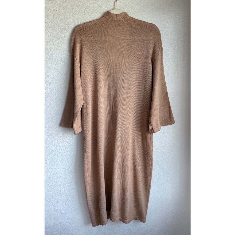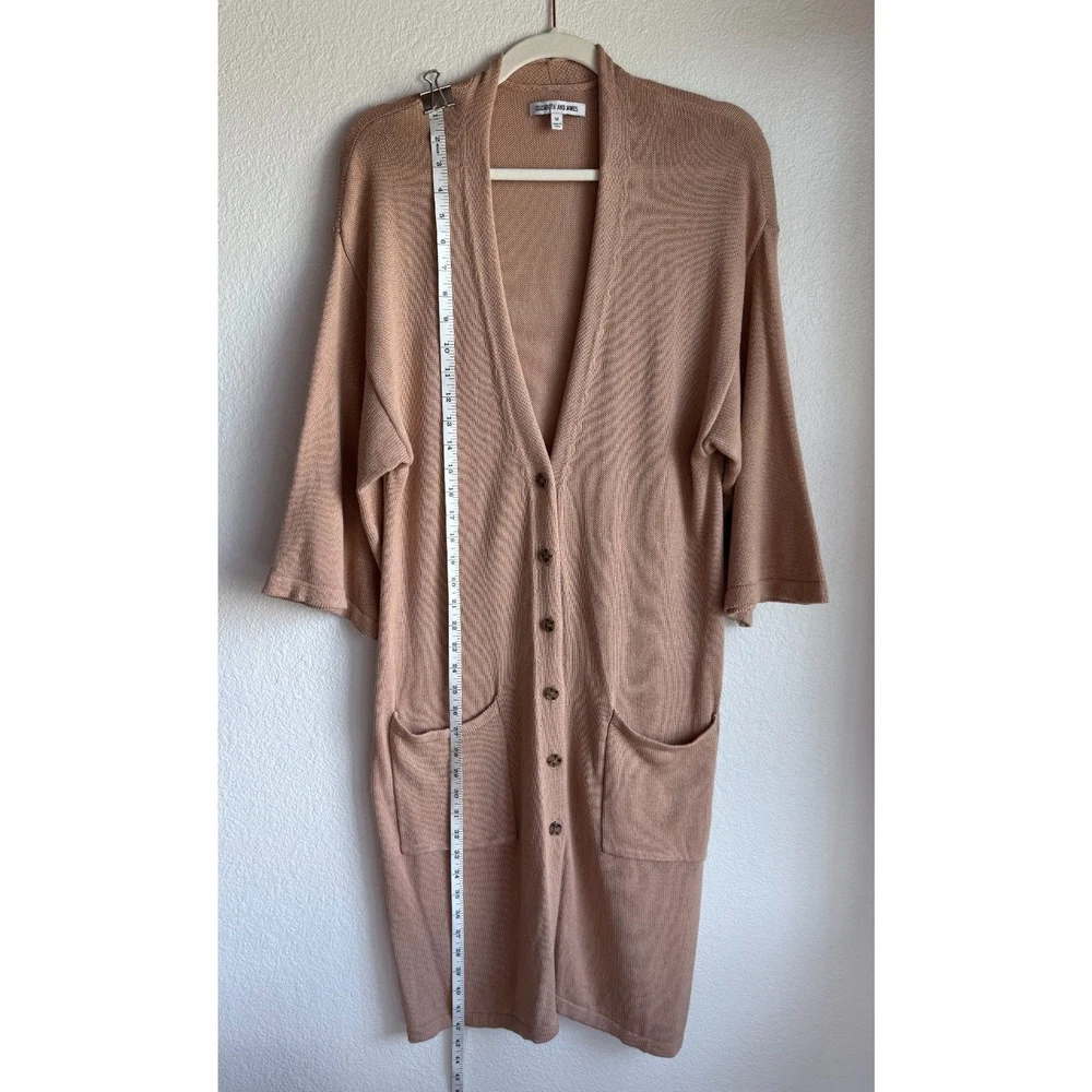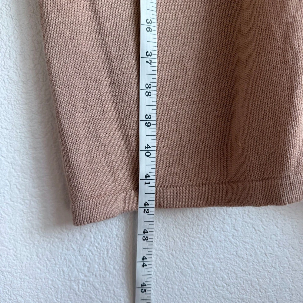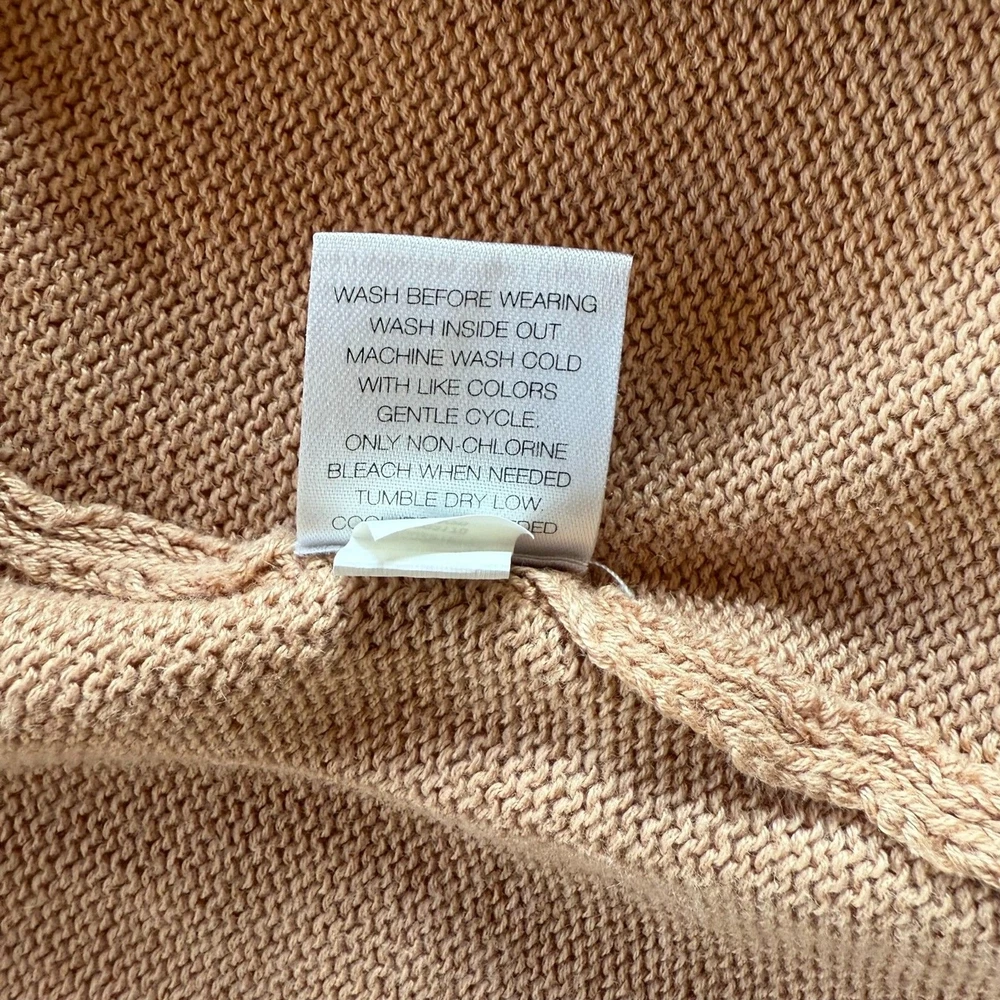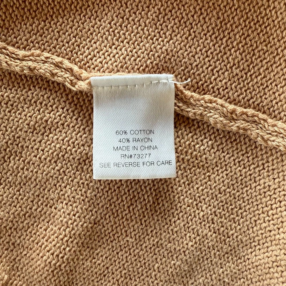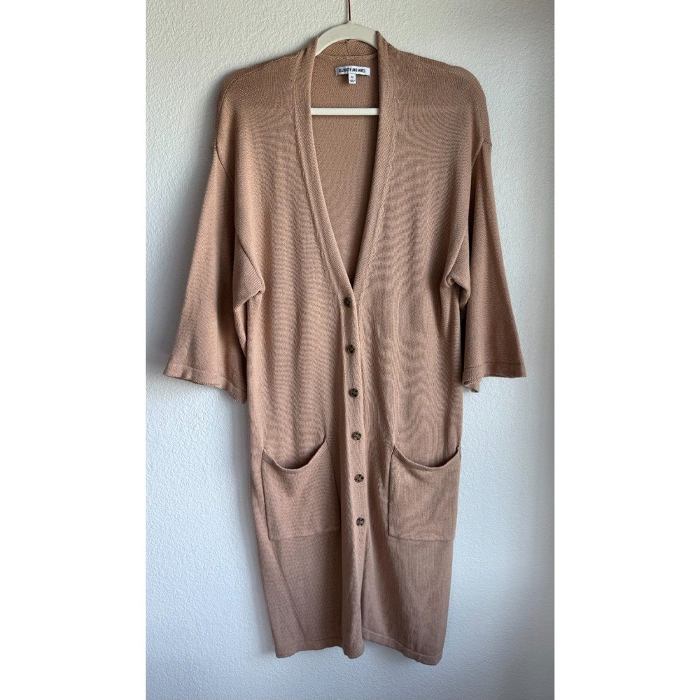 EUC - no stains, holes, or pilling. Small pull on the inside near the bottom, you don't notice it on the front (see photo). Overall in excellent condition. Lightweight knit cardigan sweater in a longer length. Relaxed fit. Deep v-neckline with button-front closure. Front pockets. Versatile camel color. 60% Cotton, 40% Rayon Sizing varies from brand to brand, please use measurements in photos to decide if this will fit. Unless otherwise specified, this is a preowned item with normal signs of wear. There is no notable damage or stains. Please see all photos for exact item condition. Wash to wear. Ships from a smoke-free home! Thanks for checking out my store! All items ordered before 10am PST ship same day. Orders received after 10am PST ship the next morning. Make a bundle to save on shipping costs.