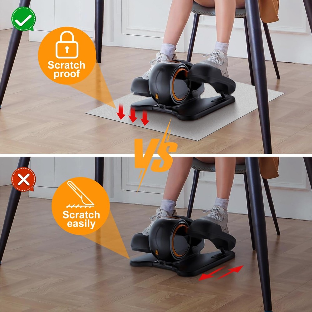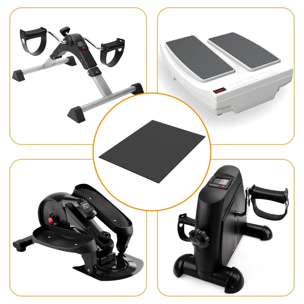This mat is a game-changer for home workouts! It keeps my elliptical stable and prevents any slipping or floor scratches. The thick, durable rubber absorbs noise and vibrations, so no more worrying about disturbing others. Easy to clean with a quick wipe, and it stays firmly in place during intense sessions. Perfect for under-desk ellipticals, steppers, or mini bikes—highly recommend for a smoother, quieter exercise experience!