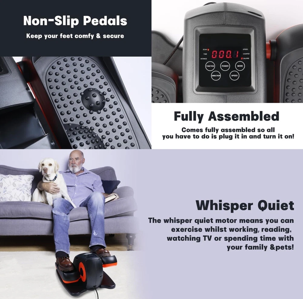 Item marked used, repackaged and in good working condition. Not in original box This elliptical trainer is a great addition to any gym or training space. With its compact design, it can fit comfortably under a desk or in a small corner. The machine features a pedal exerciser and stepper, allowing for a complete cardio workout. The black color is sleek and stylish, complementing any workout space. The brand, Panana, is known for its quality fitness equipment. The package dimensions are 19.02x17.01x10.98 inches, making it easy to move and store. This elliptical trainer is perfect for anyone looking to add a low-impact, high- Cardio workout to their fitness routine.