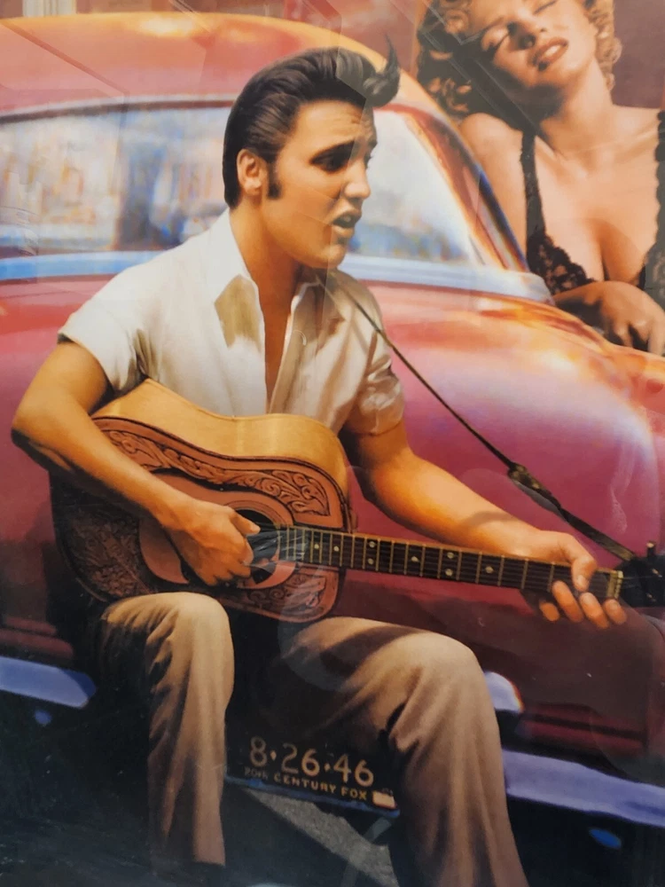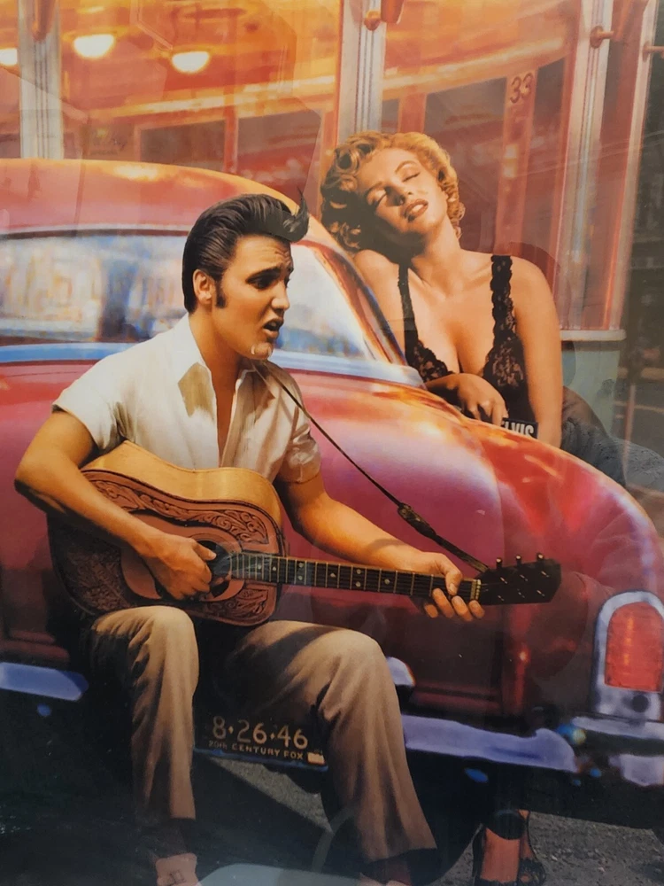 Iconic "Legendary Crossroads" by Chris Consani. Framed, Near Perfect Condition. This is a beautiful piece. The image features Elvis Presley, James Dean, Marilyn Monroe and Humphrey Bogart. Frame dimensions are as follows: 37 ×29 ×2. Inside art dimensions are 29 x 18.