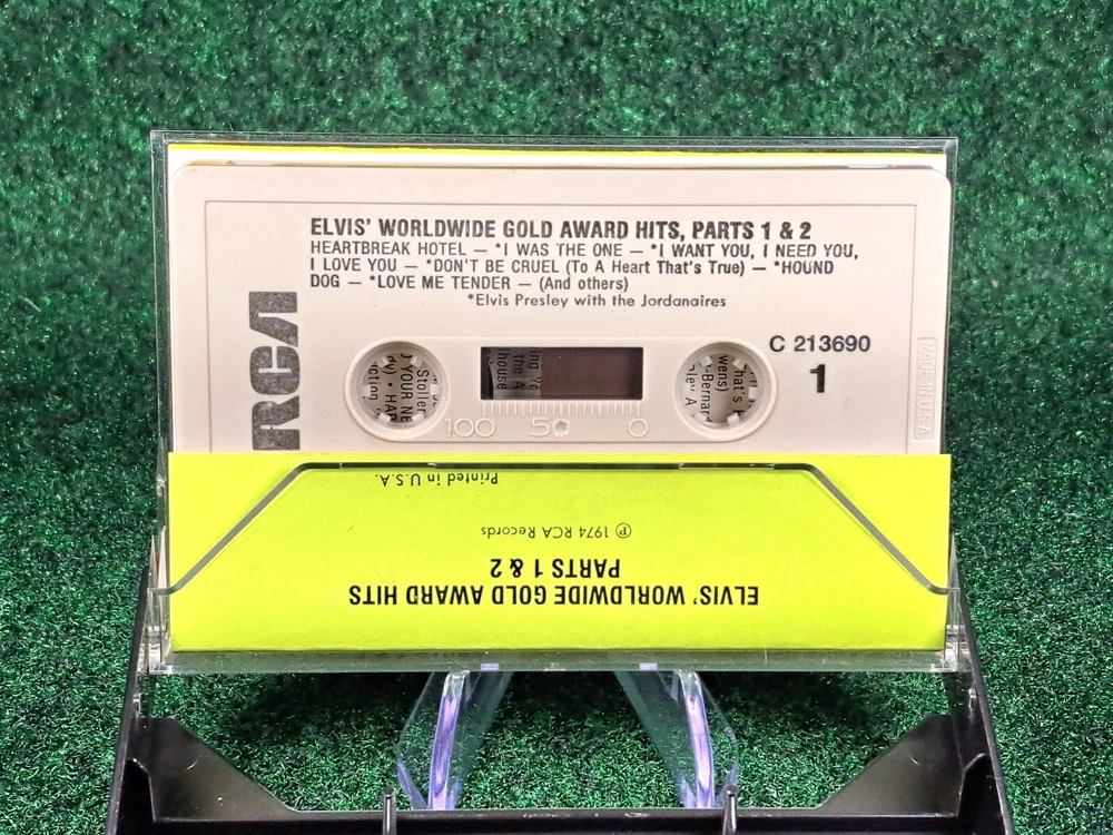 Immerse yourself in the timeless appeal of Elvis Presley with the "Worldwide Gold Award Hits, Parts 1 & 2" cassette collection. Compiled in 1974, this album features a jewel case standard for safekeeping and showcases the classic rock style that has enduring fans across generations. The gold-colored cassette and excellent condition inlay affirm the care given to this treasured compilation. With the legendary RCA Records label and the iconic catalog number C 213690, this release is a testament to Elvis's global impact. Delve into the rock 'n' roll genre with this double cassette set, which offers a nostalgic trip through the king of rock's most celebrated hits. It's a must-have for collectors and enthusiasts keen to complete their Elvis Presley anthology.