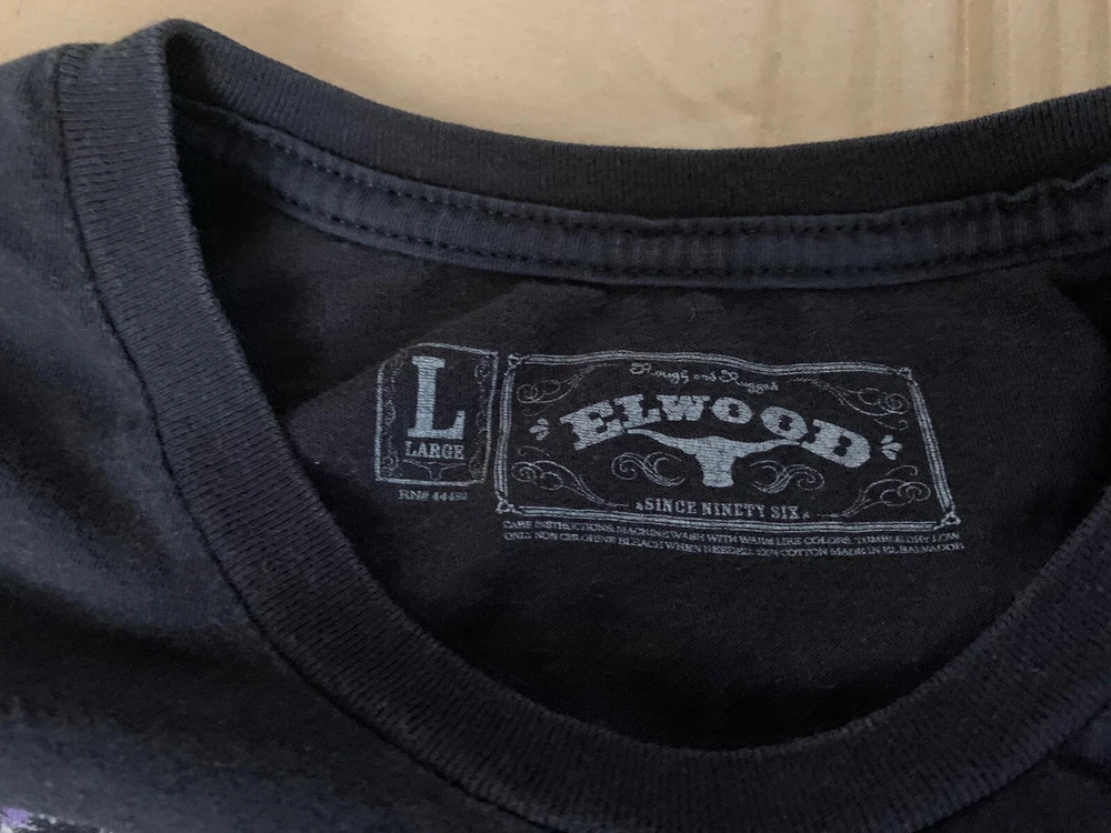 Elwood Clothing size Large T Shirt Friday The 13th. Shirt features Anthony Pappalardo, Kenny Anderson, Dan Drehobl, Silas Baxter-Neal, and John Rattray. No rips, stains or tears.