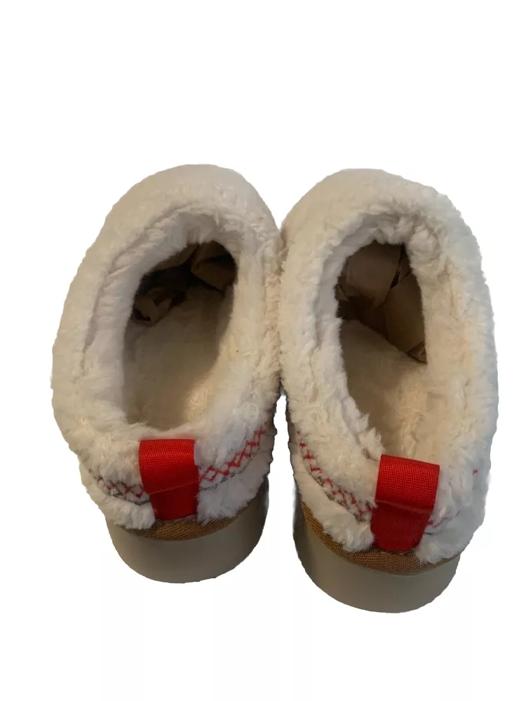 Sherpa Clog Style Slipper Size: 7 / 8 Features & Accents: White, Sherpa lined, Embroidered with Red gives it a festive look, Easy Slip in there Condition. New, No Box or Tag. Never Worn. Smoke Free Home. Same day shipping if purchased by 3:00 PM, EST. International Sales Ship through Ebay International Shipping Program. Free Returns. We truly try to disclose all information on items we list. However if we miss something, please contact us before leaving negative feedback and allow us to resolve the problem or issue a returns. Your choice. Thank you.