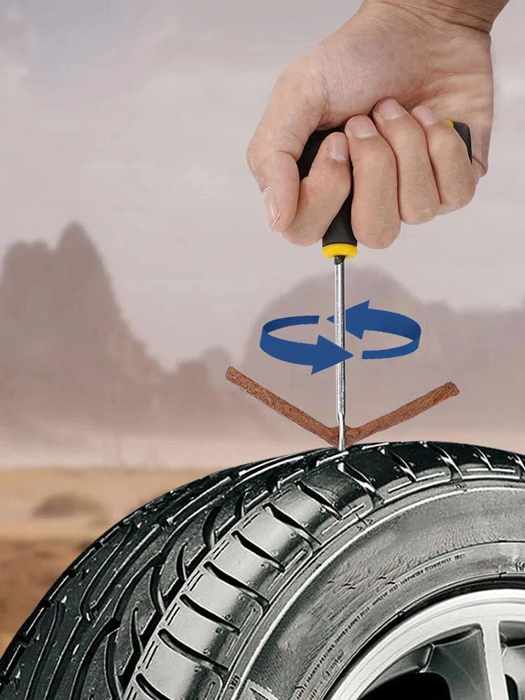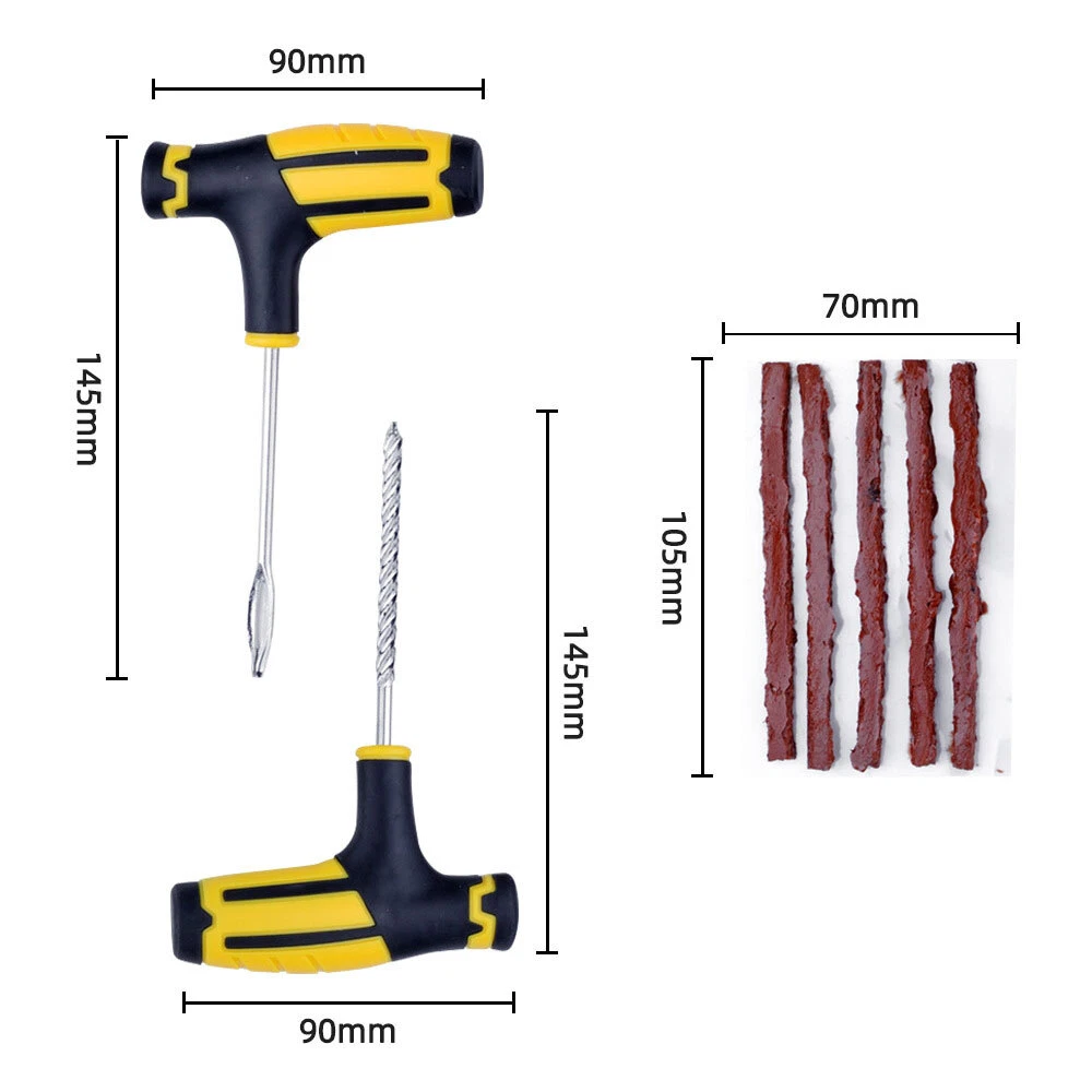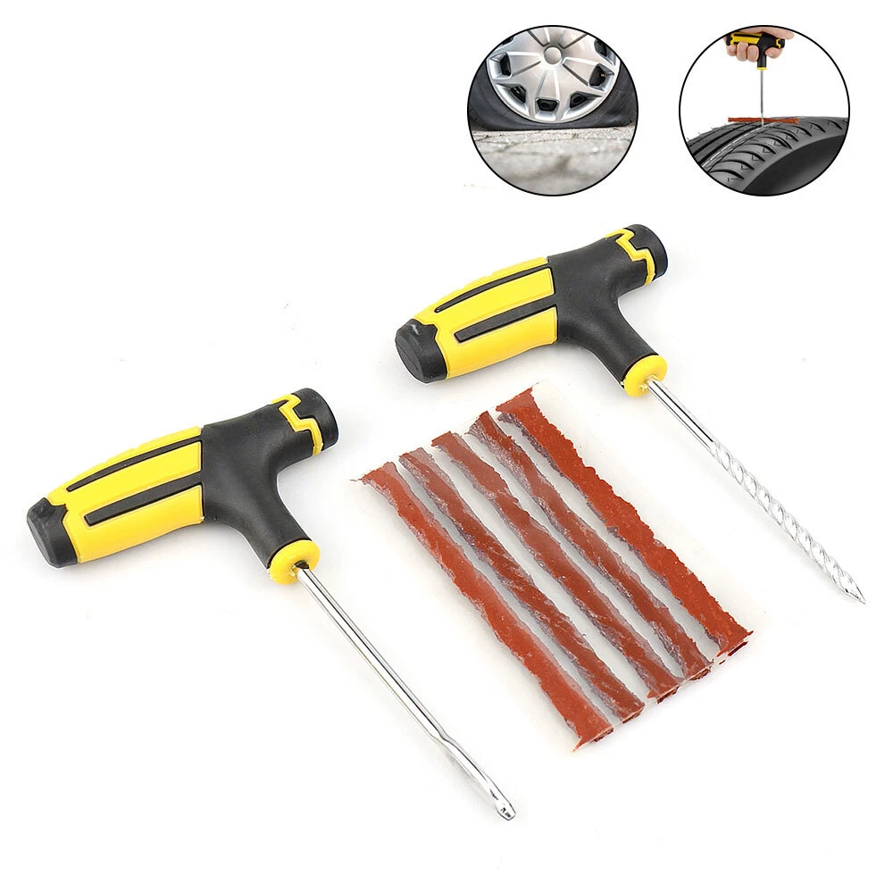Emergency Tubeless Car Tyre Puncture Repair Grip Tool Flat Tyre Plug Puncher Kit Feature: 1. Repair perforations quickly and effectively 2. Durable plastic handle provides excellent grip 3. Lightweight and easy to carry 4. The material is firm and not easy to wear how to ues Step 1: Use the included heavy-duty pliers to remove the object from the tire. Step 2: Apply lubricant on the T-handle spiral probe before use to enlarge the puncture area. Step 3: Use the attached pliers to tear off the rope and insert it. Step 4: Insert the strip into the tire and rotate it 360 degrees. Leave the strip 12 mm outside, and then pull out the needle. Step 5: Use a knife to align the excess rope with the tire tread. Step 6: Finally, re-inflate the tire to the recommended pressure. Package included 5pcs Tire Repair Plug Kit Payment Delivery details Terms of sales About us Contact us Payment We accept Payment via Paypal . Thank you for your support! Delivery details Items will arrive in 7-25 business days. The arrival time depends on some factors and different areas: This table only offer reference to the arrival time, doesn't mean we delivery to all of the above countries. Once you purchase, please DON'T leave negative or neutral feedback if you haven't received item in 30 days, because we have mentioned the shipping time repeatedly. Customs duty is obligation and liability of a citizen in your country, so buyer should be responsible for any tax and custom duty incurred. For example, Laser Pointer is unacceptable in some countries. Therefore, please double check your local customs policy carefully before purchase. Or, we will NOT be responsible for any failure delivery related destination customs issue. Terms of sales -You have 7 day to contact us and 10 days to return it from the date it was received. If this item is in your possession more than 7 days,it is considered used and WE WILL NOT ISSUE YOU A REFUND OR REPLACEMENT.There are NO EXCEPTIONS! -All Returned items Must Be in the original packaging and you MUST PROVIDE us with the shipping tracking number,specific reason for the return,and your ebay ID. -We will refund YOUR FULL WINNING BID AMOUNT, upon receipt of the item in its original condition and packaging with all components and accessories included,AFTER BOTH Buyer and Seller cancel the transaction form ebay.OR,you may choose to have a replacement. -Return shipping is to be paid by the Buyer. About us We are the Manufacturer who are afford the High Quality with the most Competitve prices in China, If you need any other items or have any questions about our items, pls feel free to contact us . Contact us We strive for 100% customer satisfaction on every sale we complete.