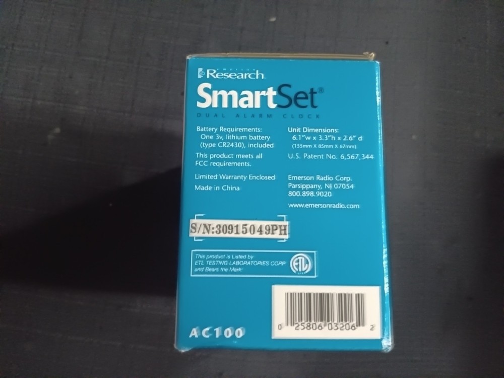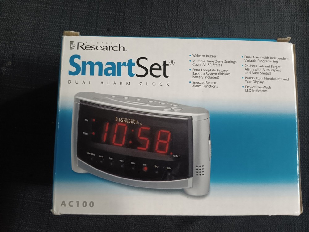 NEW Emerson Research SmartSet Dual Alarm Clock Model AC100 Red LED NIB NOS This eBay listing is for a new in the box Emerson Research SmartSet Dual Alarm Clock model AC100 that comes as you see pictured in the listing and noted above with the original box. Seller Location Reference - Box 95 BID IN CONFIDENCE – CHECK MY FEEDBACK! My goal is your satisfaction. I leave positive feedback right after the payment is received for all orders!! If you plan to leave anything less than positive feedback and 5 stars - please let me know so that I can work out any problems that you may have. I aim to please!! SHIPPING & HANDLING FOR US BIDDERS We ship ASAP upon payment as noted above within 1 business day 99% of the time!! We normally pack up your new treasures 2 - 3 times a day and ship using USPS and Fedex Ground so that you get your items in a timely fashion. As always - there is no charge for local pickup on any of my items!! SHIPPING AND HANDLING FOR INTERNATIONAL BIDDERS Import duties, taxes and charges are not included in the item price or shipping charges. These charges are the buyer’s responsibility. Please check with your country’s customs office to determine what these additional costs will be prior to bidding/buying.” THANK YOU AND HAVE A WONDERFUL DAY!! Powered by SixBit's eCommerce Solution