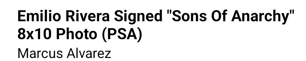 This is a rare opportunity to own a piece of television history. An 8x10 photo autographed by Emilio Rivera who played Marcus Alvarez in the popular show Sons of Anarchy. The autograph has been authenticated by Professional Sports (PSA/DNA), ensuring its authenticity. This is an original photo, not a reproduction.