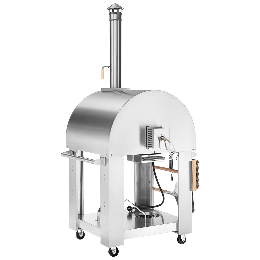 The Empava outdoor pizza oven is a perfect combination of style and practicality. Constructed with 18-gauge stainless steel for exceptional resistance to corrosion and rust. it can reach a higher temperature than conventional ovens, refractory tiles will help to store heat which cooks the food more evenly and quickly. Come with 4-wheels (2 swivel and 2 fixed) so you can easily move and lock the unit in place. You can cook using old world traditional Wood Fire and then simply switch to the modern Gas Fire. During the past years, Empava outdoor pizza oven has become more than a cooking appliance, its also an outstanding piece of furniture to liven up your garden or backyard and to turn it into a terrific cookout venue. With 2-years limited manufacture warranty, Product Dimensions: 39-inch W Free Shipping Over $49.99* Details Empava Outdoor Propane Gas Oven Pizza Maker with Thermometer - Wheels Product Description: The Empava outdoor pizza oven is a perfect combination of style and practicality. Constructed with 18-gauge stainless steel for exceptional resistance to corrosion and rust. it can reach a higher temperature than conventional ovens, refractory tiles will help to store heat which cooks the food more evenly and quickly. Come with 4-wheels (2 swivel and 2 fixed) so you can easily move and lock the unit in place. You can cook using old world traditional Wood Fire and then simply switch to the modern Gas Fire. During the past years, Empava outdoor pizza oven has become more than a cooking appliance, its also an outstanding piece of furniture to liven up your garden or backyard and to turn it into a terrific cookout venue. With 2-years limited manufacture warranty, Product Dimensions39-inch W x 36-inch D x 79-inch H The half-spherical dome shape forms a small pocket, the heat comes from the bottom up to the top of the dome and is then redirected back down to cook pizzas evenly in a few minutes The steel oven body is finished in high-temperature resistant paint, commercial grade refractory bricks will help to store heat and so pizzas cook evenly throughout. The pizza oven with a large mouth to get food in and out easier. 29.5-inch x 25.1-inch of cooking capacity to accommodate a various size of food items. Gas-fired pizza oven preinstalled an LPG gas tank regulator. Compatible with standard size 10KG gas fuel tanks, simply turn the knob to ON and it ignites automatically without needing to light it. A built-in chimney damper and oven thermometer allow for temperature control and monitoring. The 4 wheels turns the pizza oven into a portable oven, so you can move into the garage when not in use. Equipped with 4x s-shape pothooks, pizza cutter, pizza wheel, pizza oven brush, large pizza oven shovel, 1x 5A battery required (not included).