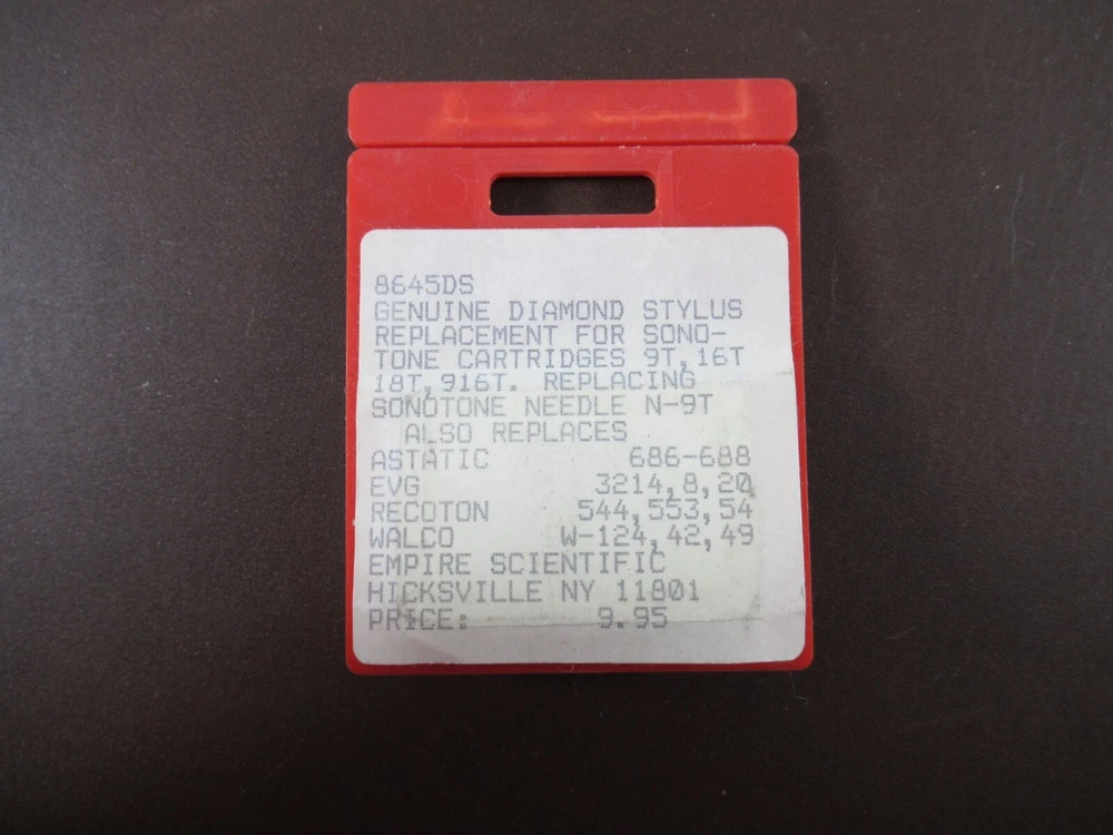 New Phonograph needle in case. Look at 2nd picture (back) if available to see compatible brands or other replacement numbers. Record needles in boxes are older. Sometimes adhesive holding cardboard onto box may have given way resulting in box being taped to close. Multiple listed quantities may have only one pictured which may or may not be taped. Needles are new regardless. Free shipping. Please check out my other listings for other interesting items. ----- Bin 8/1272-3, JJJB ----- Needles for: Astatic, DuoTone, Fideliton, Jensen, Pfanstiehl, Transcriber, Walco, Electro-Voice, Rhonette, RCA, Sonotone, Tetrad, Varco, Vaco, Zenith, Magnavox, Sharp, Pilco, Fisher, Sanyo