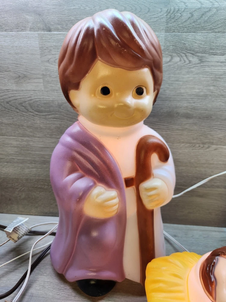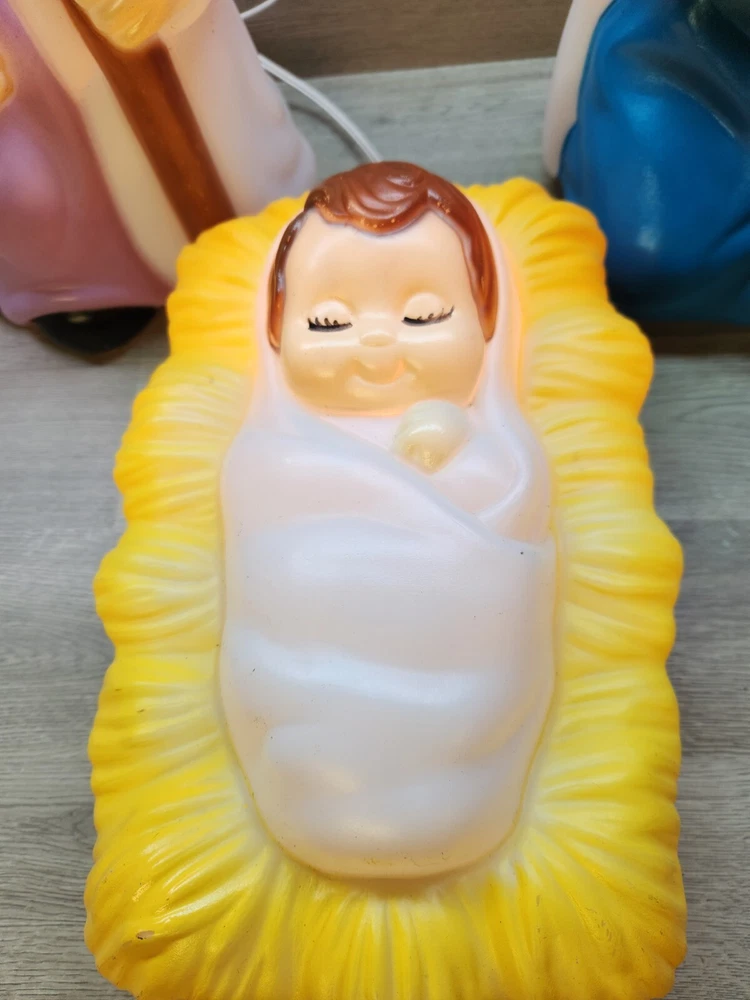 All 3 pieces in good overall condition with some minor paint chips that are typical with blowmolds this age. All 3 include lights