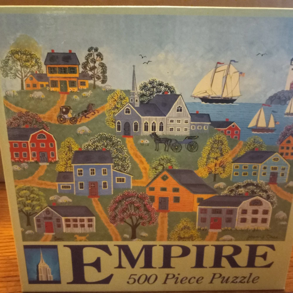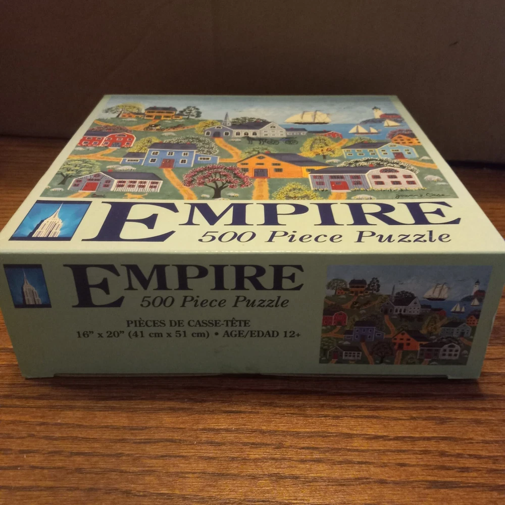 Empire Puzzle Makers By The Cove 500 Jigsaw Puzzle Brand: Empire/Puzzle Makers Design: By The Cove Color: Multi-Color Pieces: 500 Features: Cardboard Size: 16"x 20" Includes: Puzzle Pieces, Poster, Box Used Condition Complete Box Shows Wear - Tape On Edges, Box Damage