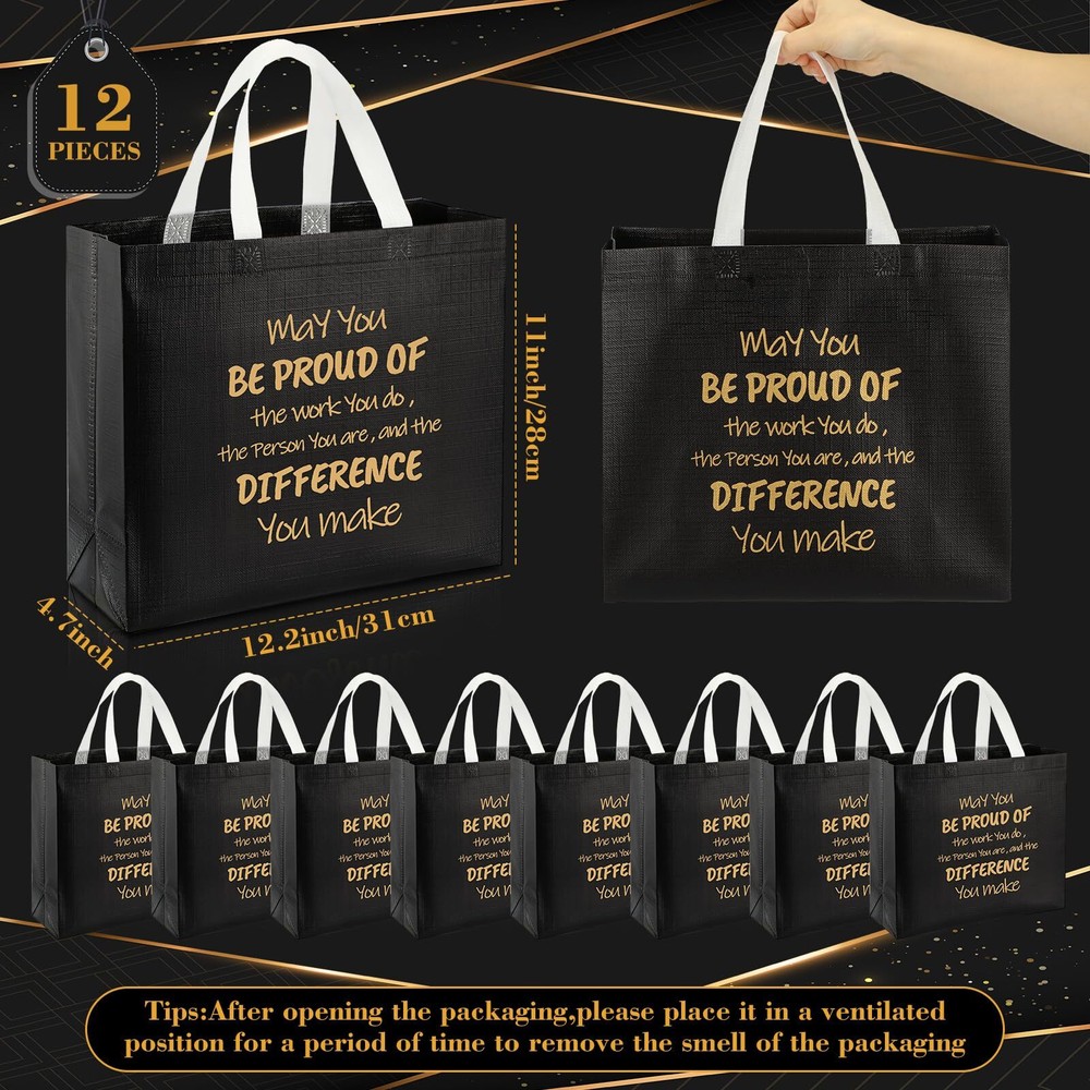 eBay Product Listing Welcome to Your Favorite My Store Your satisfaction is our top priority – Shop confidently 12 Pcs Employee Teacher Appreciation Gift Bag Glossy Reusable 12.2 x 4.7 x 11 Inch May You Be Proud Thank You Bags with Handles for Coworker Volunteer Secretary Nurse(Black) Item Gallery Item Description Sufficient Employee Appreciation Gifts: get 12 black gift bags with handles and 12 sturdy cardboard inserts to enhance load capacity; There are sufficient gift bags, so you can share your gratitude with multiple team members effortlessly Suitable Size: thoughtfully designed at about 12.2 x 4.7 x 11 inches/ 31 x 12 x 28 cm, these black gift bags can comfortably fit various items; From small tokens of appreciation like cups, snacks and candy to larger gestures like clothes, shoes and books, these bags can accommodate it all Reliable Non Woven Fabric Material: crafted from quality non woven fabric, these gift bags are not only long lasting, sturdy, lightweight, portable and reusable but also add an elegant feel; Your employees will notice the attention to detail put into their design Delicate Design: the black tote bags exude elegance; The printed message, "May You BE PROUD OF the work you do, the Person You are, and the DIFFERENCE You make" shows appreciation; Let your employees feel valued with these sophisticated bags Multipurpose and Various Occasions: suitable for various events, these reusable gift bags are not limited to just employee appreciation; They are also ideal for birthdays, teacher appreciation week, company annual meeting, office celebrations, and holiday presents Special Features Features: Simple to and carry: In addition to their beautiful design, these thank you gift bags are easy to and carry. Foldable and with sturdy handles, transportation is effortless. Nice appreciation gifts: Specifically designed for employees, these tote bags bulk are the ideal choice for showing gratitude. Create a positive work environment with these gift bags filled with appreciation and acknowledgment. Specifications: Material: non woven fabric Color: black, white, gold Size: about 12.2 x 4.7 x 11 inches/ 31 x 12 x 28 cm Package includes: 12 x Black gift bags with handles Notes: Manual measurement, please allow slight errors on size. The color may exist a slight difference due to different screen displays. Our Guarantee To You We offer fast shipping, free delivery, and 100% customer satisfaction guarantee. Not satisfied? Return your item for free within 30 days. 30-Day Free Returns Shipping Details Items will be sent to your eBay address. Please verify before purchasing. Typical delivery within 3-7 business days. Professional shipping services used for all orders. We ship to the continental US (48 states only). Unable to deliver to Alaska, Hawaii, or territories. No APO/FPO or PO Box deliveries available. We use eco-friendly packaging Payment Options We accept these secure payment methods: All transactions securely processed through eBay's payment system. Simple Returns 30-Day Satisfaction Promise Contact us through eBay messages within 30 days of delivery. We'll provide return instructions and our address. Return the item in its original condition. We'll process your refund within 48 hours of receiving the item. Get In Touch Have questions about your order? Contact us through eBay messaging for prompt assistance. We typically respond within 24 hours.
