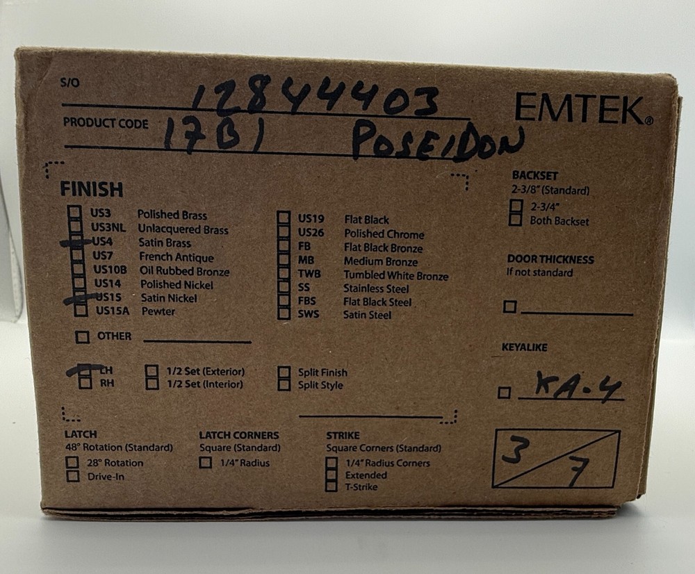 Emtek Modern Multi Point Trim Lever Set 17B1 POSEIDON US4-US15 Your choice of lever included Crafted from high quality forged brass for lasting durability Premium finishes maintain their appearance over time Includes all necessary mounting hardware Covered by Emtek's limited lifetime warranty Specifications: Door Thickness: 1-3/4", 1-5/8", 1-7/8", 2", 2-1/2", 2-1/4", 2-1/8", 2-3/4", 2-3/8", 2-5/8" Cylinder Hub Location: Above Handle American Cylinder Center to Center: 6" Mounting Holes Center to Center: 5-3/16" Handle to Mount: 11/16" Manufacturer Door Configuration: 7 Trim Height: 10" Trim Width: 2"