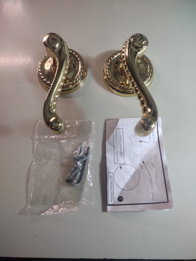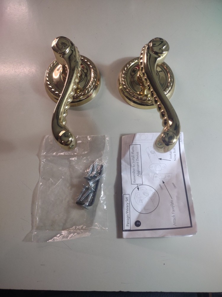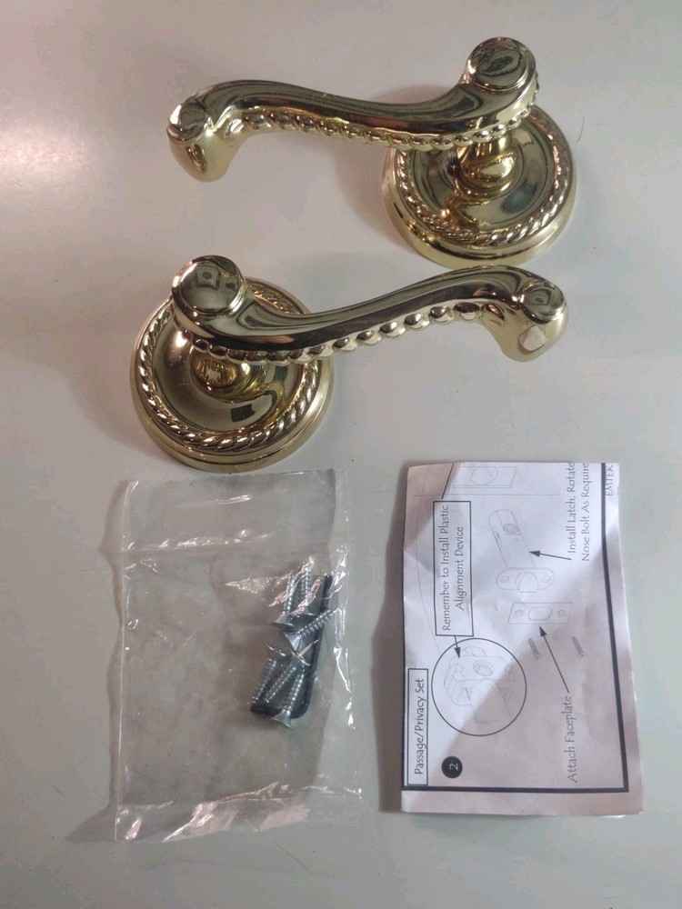 Emtek Decorative Hardware Door Handles. Condition is open box, unused. Not sure if it's in its original box. You will receive the exact items pictured. Pictures are part of the description. Thanks for looking. Lot 2.