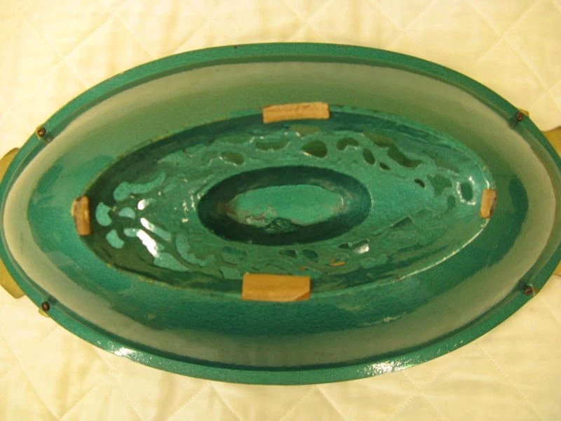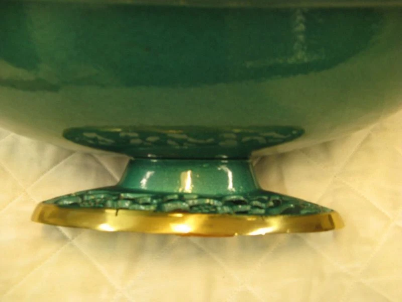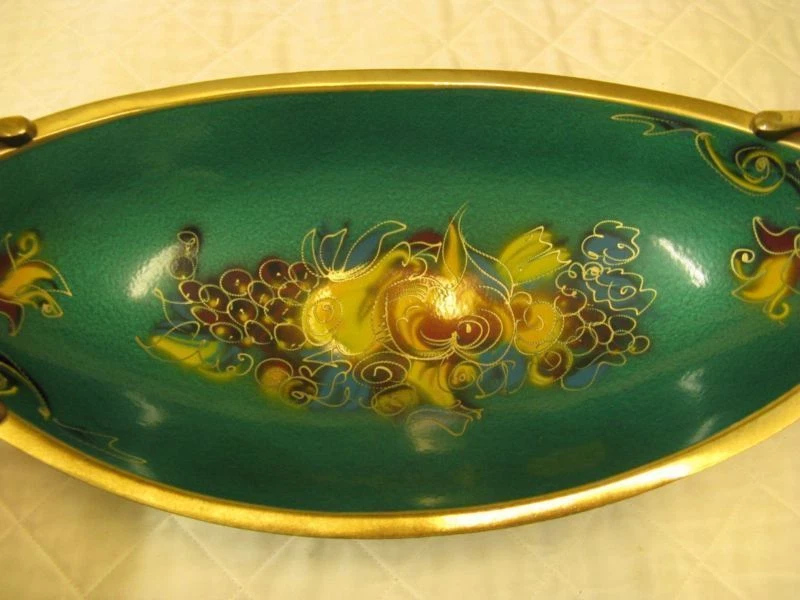Judaica Made In Israel Green Enameled Brass Fruit Bowl Display Dish Vintage 1960 Beautiful display fruit dish/bowl. Made in Israel 1960's. In excellent condition. Dimensions are 17" long handle end to handle end, 7 1/2" wide, 4" high at middle and 5" high at both handles. Smart-phone users, click top right menu of phone, select 'request desktop site'. After the item reloads in desktop view, tap on main picture, it will open in spectacular viewing quality with zoom, enabling you to actually read the words on the pages and see tiny details. Tap side arrows to see next picture. We accept all payment methods which are shown on this site as capable of accepting, including Paypal, payment via personal check or MO can be arranged via messaging me, website permitting. This listing has pictures of the actual book or books being sold, no stock-photos or photos of similar items, I took a complete set of new pictures especially for this listing and I have carefully described the condition of this specific item that you are looking at. Thank You.