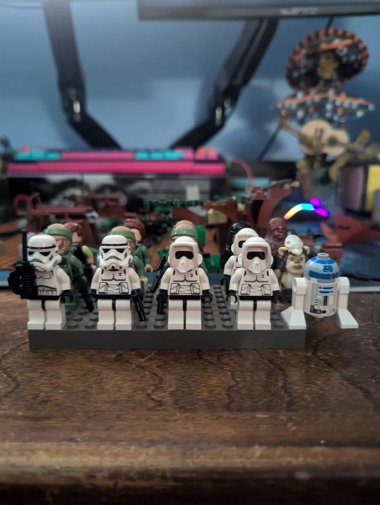 This is an add of the endor set 8083 plus a ton of extra minifigures. The set should be complete but can't guarantee that so as is. Two catapults from official Lego starwars endor sets plus the walker that comes with the endor 8083 set. Also comes with an added on roof for the endor base.