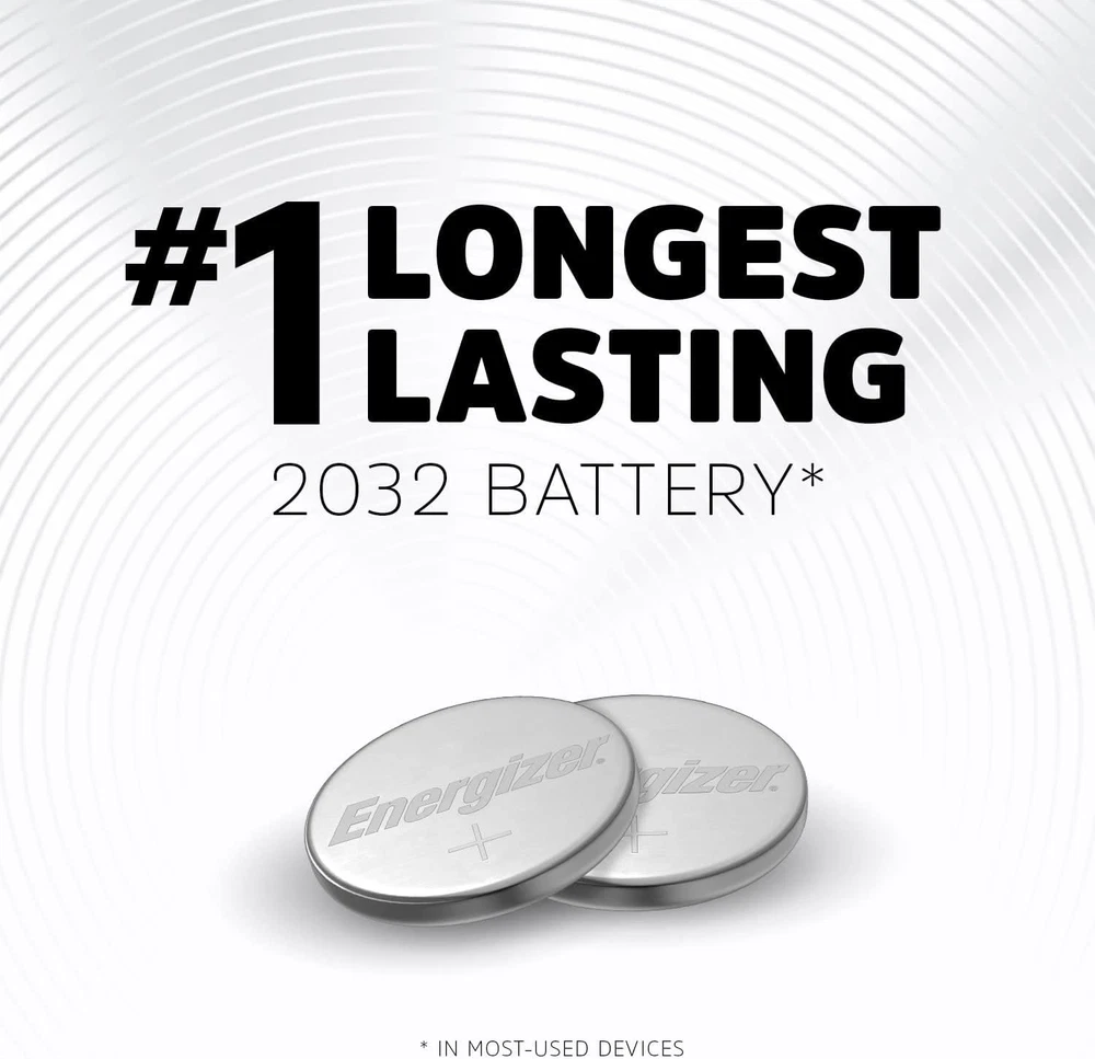 Energizer CR2032 Batteries 4 Pack, 3V Lithium Coin Batteries with Child Shield 3V LITHIUM COIN BATTERIES: One 4 pack of Energizer 2032 Batteries. Packaging may vary 3-IN-1 CHILD SHIELD: Featuring the worldâ€s first 3-in-1 Child Shield with three lines of defense: Color Alert, a bitter coating, and secure packaging (only on select packs) COLOR ALERT: Color Alert technology dyes the mouth blue seconds after contact with saliva to indicate possible ingestion BITTER COATING AND SECURE PACKAGING: Non-toxic bitter coating helps discourage ingestion, while the secure packaging is almost impossible to open without scissors WITHSTANDS EXTREME TEMPS: Performs in extreme temperatures from -22 to 140 degrees Fahrenheit for dependable power, even in the toughest conditions POWERS A VARIETY OF DEVICES: Ideal for use as remote batteries and medical device batteries; also an ideal power source for your keyless entry system, toys and games OUR LONGEST LASTING 2032 BATTERY: Our longest lasting 2032 coin cell batteries last up to 12 years in storage to provide reliable power when you need it most Thank you for viewing our Energizer CR2032 Batteries 4 Pack, 3V Lithium Coin Batteries with Child Shield.