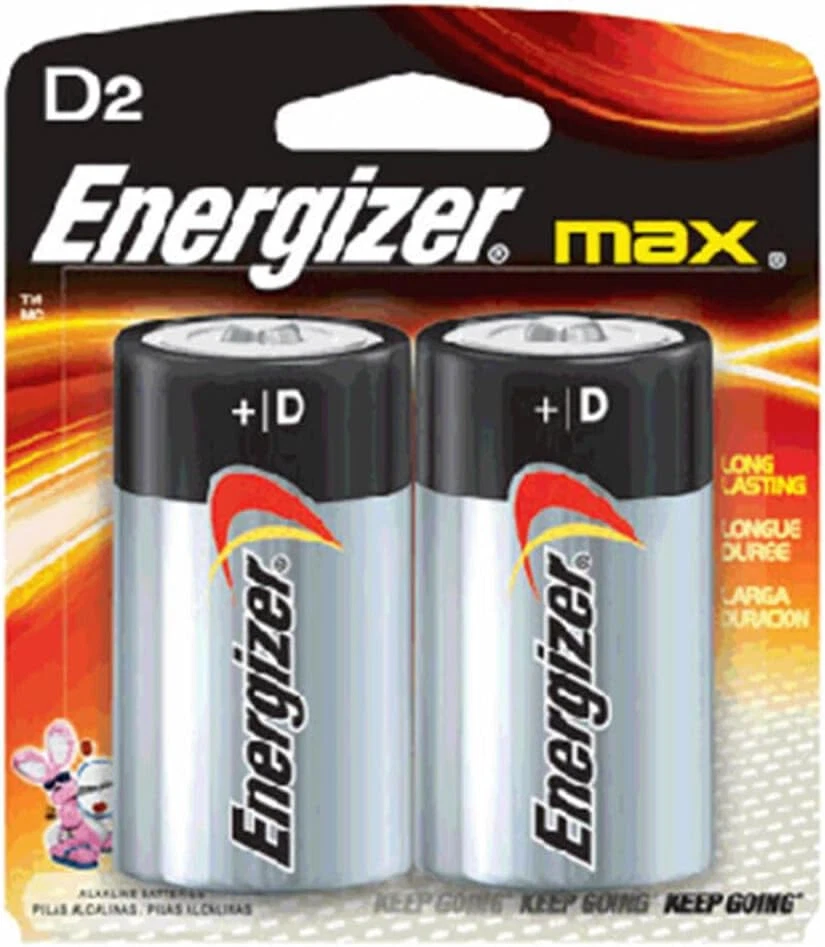 Product Description Energizer MAX D Batteries D Cell Alkaline Lithium General Purpose Batteries 2 Count (Pack Of 2) Energizer MAX D Alkaline Batteries. Energizer provides long lasting power for your everyday devices, whether you need replacement D cell batteries for high-tech flashlights, radios or children's toys. Made to last, not to leak, these Energizer D batteries have a shelf life of up to 10 years, so they're ready to keep your devices operating when you need them most. Each battery pack contains D batteries to keep your supply of backup batteries well stocked. Depend on Energizer MAX D batteries to fuel your everyday electronics, whether you're at home, work or play. Long-lasting power and innovation is what the Energizer MAX family is all about – up to 10-year shelf life for D batteries. Plus, Power Seal Technology is the Energizer innovation that delivers energy you can rely on. Energizer MAX Alkaline Batteries, D, 2 Batteries/Pack Dependable, long-lasting performance in a wide range of devices. Makers of the world's first zero mercury AA alkaline (commercially available since 1991); battery can be disposed with regular household trash. 10-year shelf life. Battery Type: Alkaline; Battery Size: D; Voltage: 1.5 V; Material(s): Alkaline Manganese Dioxide. Long-life alkaline From the Manufacturer Made in U.S.A. 2 pack of Energizer MAX D Batteries, Batteries D Size These alkaline D batteries provide long lasting power for your everyday devices The power you depend on for high-tech D battery flashlights, radios, toys and other high-drain devices MAX D alkaline batteries that hold power for up to 10 years in storage Energizer MAX D batteries are made to last. Not to leak Feel confident knowing you have the long-lasting power and protection you expect from Energizer MAX D battery pack that holds power for up to 10 years in storage D Alkaline batteries that are made to last. Not to leak. Also available in AAA batteries, AA batteries, C batteries and 9V batteries Alkaline batteries provide a long-lasting power source Use in calculators, Pencil sharpeners, cameras, flashlights and more Package Dimension : 3.4 centimeters L x 9.3 centimeters W x 13.0 centimeters H Country of Origin: UNITED STATES