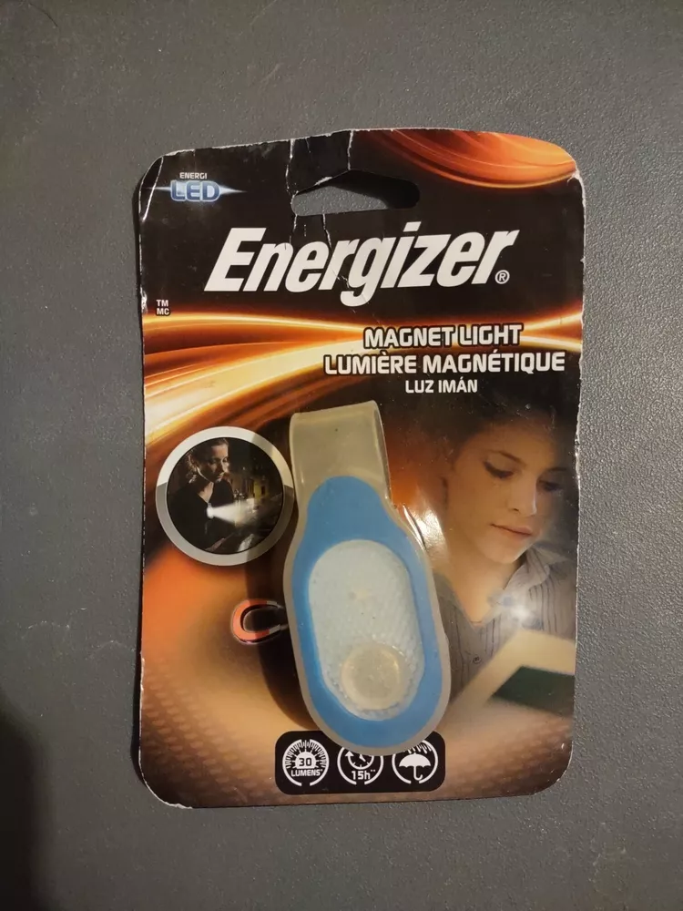 Energizer Magnet Light Clip On is powered by batteries. It is designed for reading. The light has a magnet clip on for easy attachment to clothing or equipment.