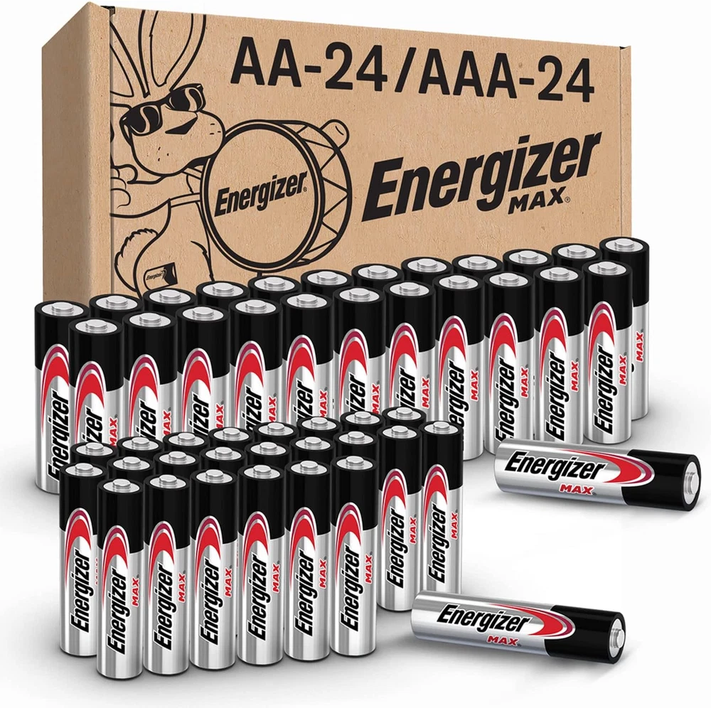 Energizer Max 24 AA and 24 AAA Batteries Combo Pack, 48 Count 24 pack of Energizer MAX alkaline double AA batteries and 24 Pack of Energizer MAX alkaline triple AAA batteries Our no.1 longest lasting Max battery powers everyday devices, powerful batteries aa size and batteries aaa size Leak resistant construction protects your devices from leakage of fully used batteries for up to 2 years. Bonus: it's guaranteed Holds power up to 12 years in storage so you're never left powerless Eligible for use with an Amazon Dash Smart Shelf auto-replenishment scale to keep you stocked on your favorite necessities Thank you for viewing our Energizer Max 24 AA and 24 AAA Batteries Combo Pack, 48 Count.