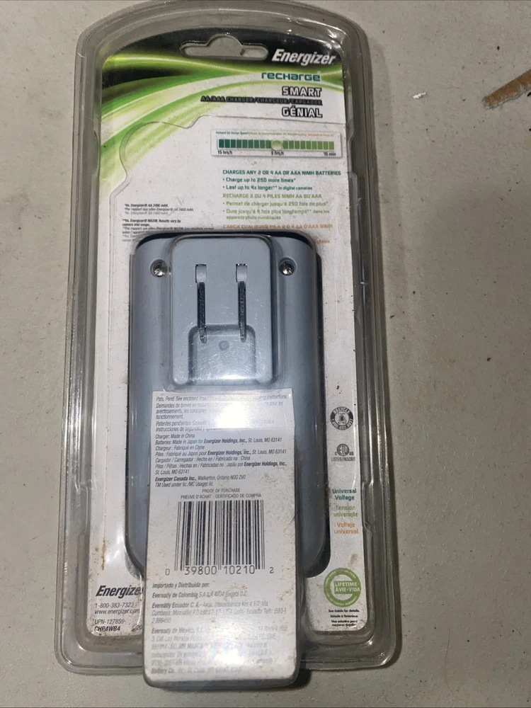 Brand: Energizer MPN: Does Not Apply Battery Type: AA AAA UPC: 039800102102 Battery Capacity: 4 gtin13: 039800102102 Compatible Battery Sizes: AA, AAA Battery Type Included: AA Type: Mains Charger Number of Batteries Included: 8