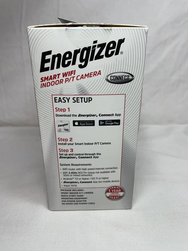 This Energizer Smart WiFi Indoor Pan & Tilt Motion Alert Night Camera is the perfect addition to your home surveillance system. With a maximum resolution of 1080p (FHD), this camera ensures crystal-clear footage day or night. The camera comes with a 64 GB Micro SD card, which provides ample storage space for your videos and pictures. The Energizer Smart WiFi Camera is compatible with Google Assistant and Amazon Alexa, making it easy to control and monitor your home's interior. This indoor smart camera features Wi-Fi connectivity, night vision, pan & tilt, two-way audio, and live video viewing. It also has motion/PIR activated features that ensure you are alerted to any unusual activity. The camera can be powered by both USB and wall plug-in, making it flexible and easy to use.
