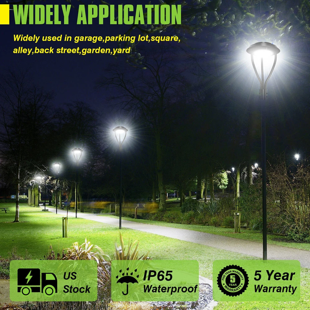 Product Description 100W LED Dusk to Dawn Light Outdoor Street Garden Pathway Yard Parking lot Lamp Light Up Larger Area - The 100w light post bring 14000Lm with SMD3030 chips, up to 140lm/watt, AC 100-277V universal voltage and 120°beam angle. 5000K color temperature of lighting is a nice choice for street light illumination. Anti-shock, anti-moisture, no glare, no strobe light, no ghosting, protecting your eyes. Dust to Dawn Photocell - The Led circular post top pole light comes with photocell sensor outside automatically turns ON at sundown/night and light post at sunrise/daytime with dusk to dawn, high power factor >0.9, more than 50000hours lifespan, reduce your electricity consumption, save your electronic bill. Provides a continuous, efficient outdoor lighting environment. Commercial Grade Material - The DLC/ETL Listed post pole light fixture made of die-casting aluminum body + protective glass cover. The scientific design helps the exterior light post top to dissipate better, achieve the best use of the led lighting post. IP65 waterproof for drying, wet environment, sandstorms, snowstorms, and harsh weather conditions. Wide Application - The circular post top design give the lamp a uniform brightness and can be applied to a variety of outdoor scences, such as pathway, street, front yard, city expressway, trunk/rustic road, factories, playground, school, garden, courtyard, parking lot, public park, walkway, exterior, driveway, store, farmyard or any other commercial and industrial area. Installation and Warranty - The pole mount of our post area light fits for a 2 3/8-inch OD tenon & less than or equal to 3 inch standard pole, very easy to install and transfor(Please see the video on the product page for more installation info). KUKUPPO offer you lasting safety and reliability backed by a 5-year warranty. For a bulk order, email us in advance to get a different offer. Specifications: Rated Wattage: 100W Luminous Flux: 14000Lm Color Temperature: 5000K Protection Grade: IP65 Material : Aluminum Body+Glass Cover Input Voltage : AC100-277V 50/60Hz Dimension: Dia 400x650 mm Base: 2 Pins Wire Power Factor: >90% Beam Angle : 120 degrees Average Lifetime : More than 50000 hours Flexible Installation The pole mount of our post area light fits for a 2 3/8-inch OD tenon & less than or equal to 3 inch standard pole, very easy to install and transfor Commercial Grade Material DLC/ETL Listed quality. Scientific design helps the exterior light post top to dissipate better, achieve the best use of the led lighting post. Durable Support Rod Made of thick aluminum, stable and strong, waterproof and rustproof. High performance quality provides with lasting safety and reliability. Ultra Bright LED Chips With SMD3030 chips, up to 140lm/watt. Anti-shock, anti-moisture, no glare, no strobe light, no ghosting, protecting your eyes. Kindly Note Please note that the light can not be used IN the water. Please confirm the wire connection is right while installing. About Us Payment Shipping Returns Contact Us SHENZHEN NUOGUAN TECHNOLOGY CO. LTD founded in 2010. We are high-technology comany specialized in manufacture Commercial and industrial LED light. Advanced production equipment and excellend R&D ability help us to combining service ,production sell together provide top-level products to our customers. 1. Payment is expected within 7 days of auction close. Or Unpaid Items will be forfeited per eBay . 2. Taxes may be applicable at checkout as states adopt new laws and regulations regarding sales tax collection. 1. We ONLY ship to USA . 2. Orders processed within 1-2 business day of payment verification. There’s no Delivery service or courier service on Saturdays, Sundays or Public Holidays. 3. We have 3 different warehouse in US,so due to stock status and time differences, we will choose to ship your item from our first available warehouse for fast delivery. 4. We offer Free Shipping within the Lower 48 states! All packages are sent via UPS or USPS.The delivery time for UPS Ground is typically 2-5 business days. We strive to ensure 100% satisfaction for each and every one of our customers. we offer a 30-day 100% money-back guarantee on all eBay orders. If your item isn't just as you wished, simply send it back to us and we'll refund or replace your item. Please note that all returns must be authorized by our Customer Service department. please contact us though message first if you have any problem. USA Warehouse. Fast shipping! We are appreciated your purchasing form our eBay store. Office Time: 9:30 - 18:30, Monday - Saturday (UTC+8) Please contact us with eBay Message. We will respond you within 24 hours on business day. About Us SHENZHEN NUOGUAN TECHNOLOGY CO. LTD founded in 2010. We are high-technology comany specialized in manufacture Commercial and industrial LED light. Advanced production equipment and excellend R&D ability help us to combining service ,production sell together provide top-level products to our customers. Payment 1. Payment is expected within 7 days of auction close. Or Unpaid Items will be forfeited per eBay . 2. Taxes may be applicable at checkout as states adopt new laws and regulations regarding sales tax collection. Shipping 1. We ONLY ship to USA . 2. Orders processed within 1-2 business day of payment verification. There’s no Delivery service or courier service on Saturdays, Sundays or Public Holidays. 3. We have 3 different warehouse in US,so due to stock status and time differences, we will choose to ship your item from our first available warehouse for fast delivery. 4. We offer Free Shipping within the Lower 48 states! All packages are sent via UPS or USPS.The delivery time for UPS Ground is typically 2-5 business days. Returns We strive to ensure 100% satisfaction for each and every one of our customers. we offer a 30-day 100% money-back guarantee on all eBay orders. If your item isn't just as you wished, simply send it back to us and we'll refund or replace your i