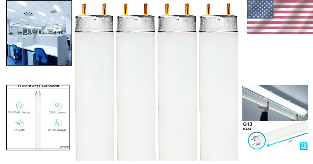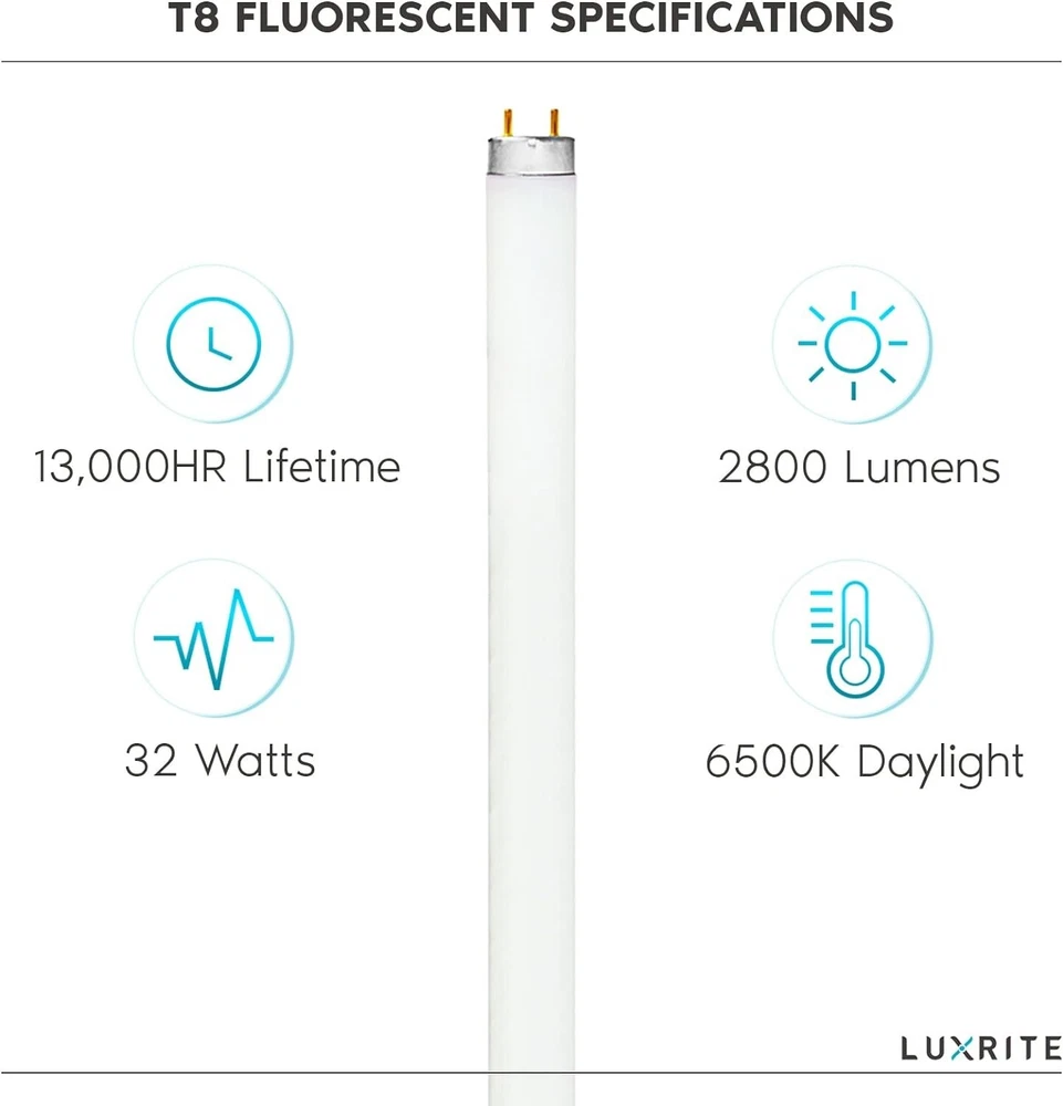 These T8 fluorescent tubes are fantastic—super bright at 2800 lumens with a crisp 6500K daylight tone. They save energy without sacrificing light quality and last up to 13,000 hours. Perfect for garages, offices, or workshops, and the 4-pack is a great value. Easy to install and works flawlessly in standard G13 fixtures. Highly recommend!
