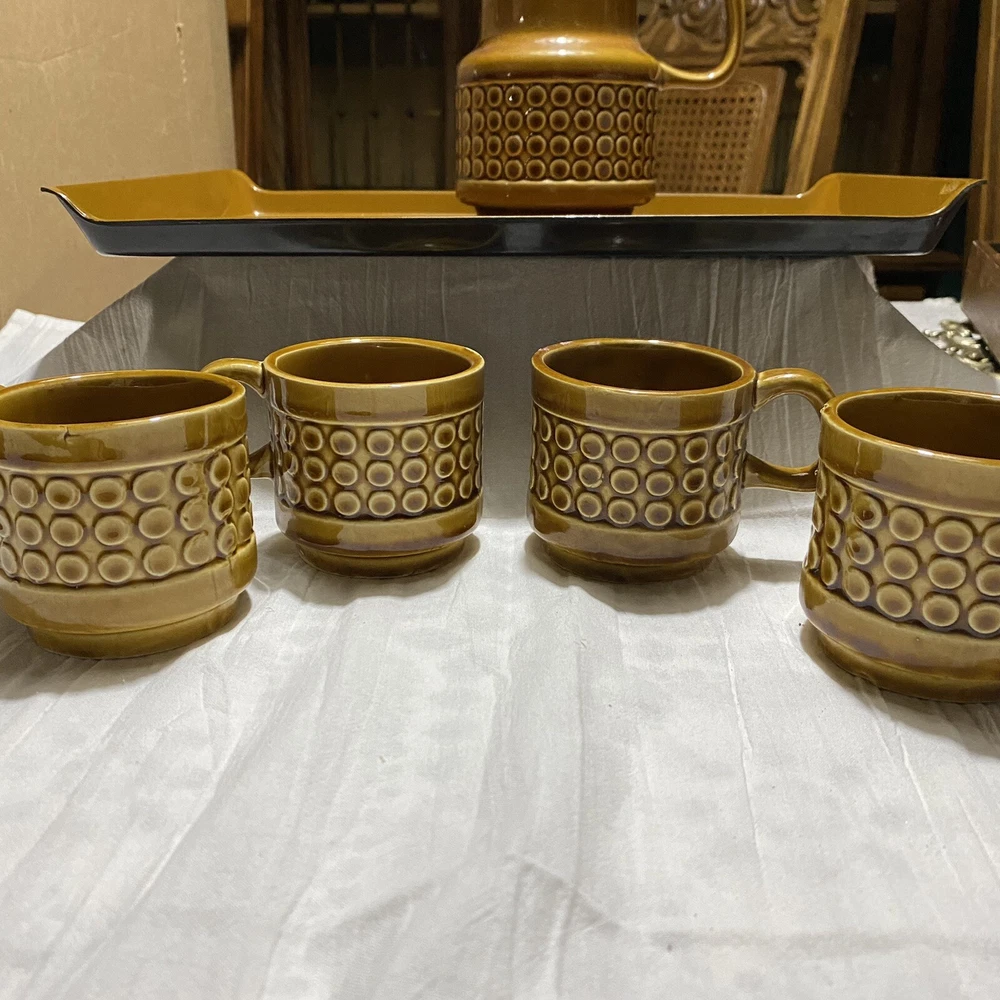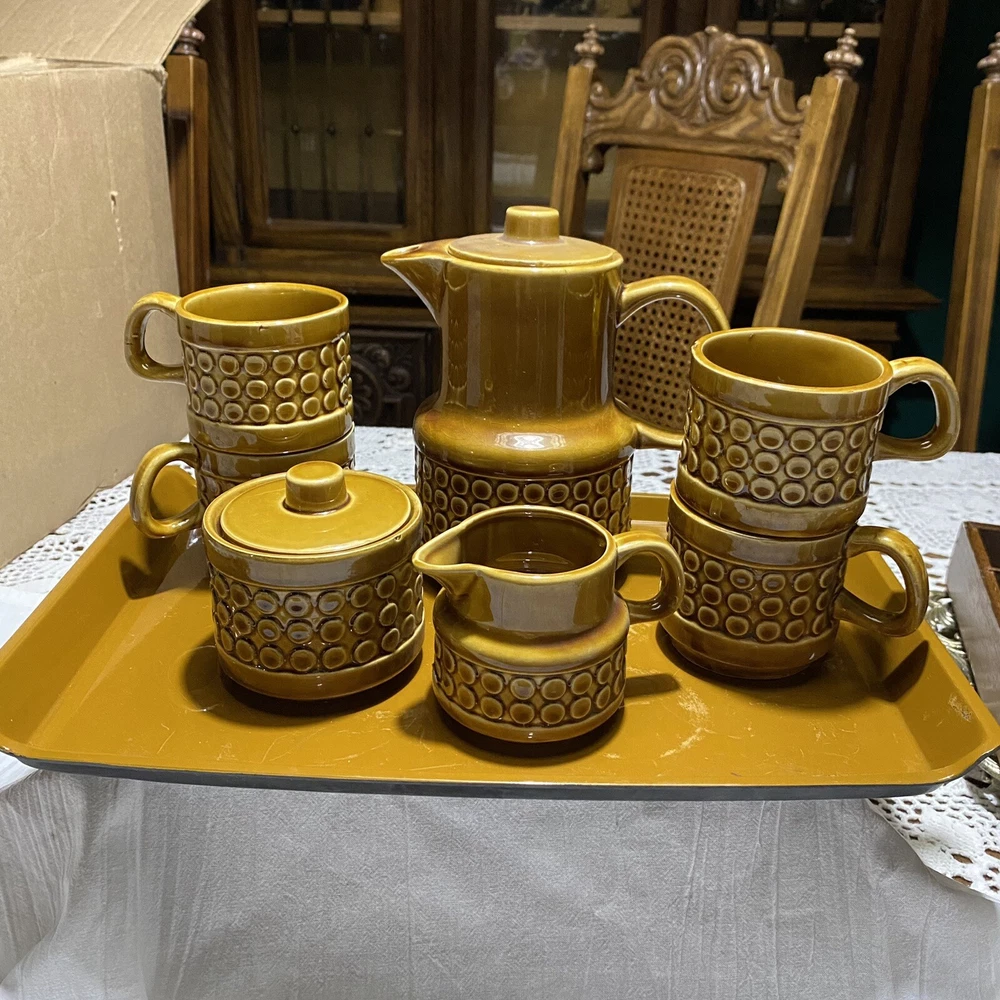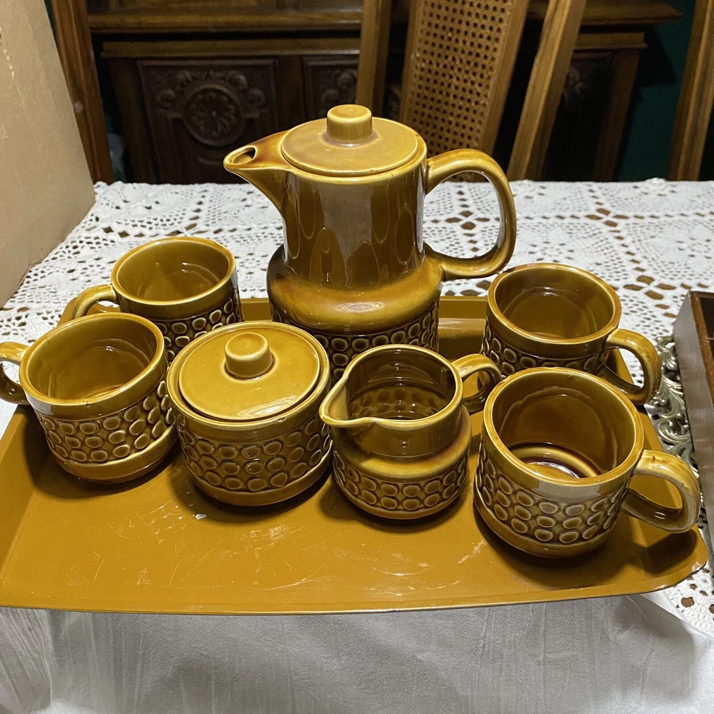 GORGEOUS SET! 1 teapot 1 sugar with lid 1 creamer 1 tray 4 cups Just in time for Christmas Impress your frigid mother in law Great condition Selling as is, as found. Condition is as shown in photos. You are purchasing the item that is in the pictures. The pictures are part of the description. If you have questions please contact me before bidding and before you have won the auction. I am more than willing to help answer any questions or send more pictures prior to the auction ending. Only item in title and description is included in sale. Nothing in background included. Colors shown can very from computer to computer Thank you! 😊 I ship on Mondays and Thursdays. (Only selling out of absolute necessity, these are from my personal collection).