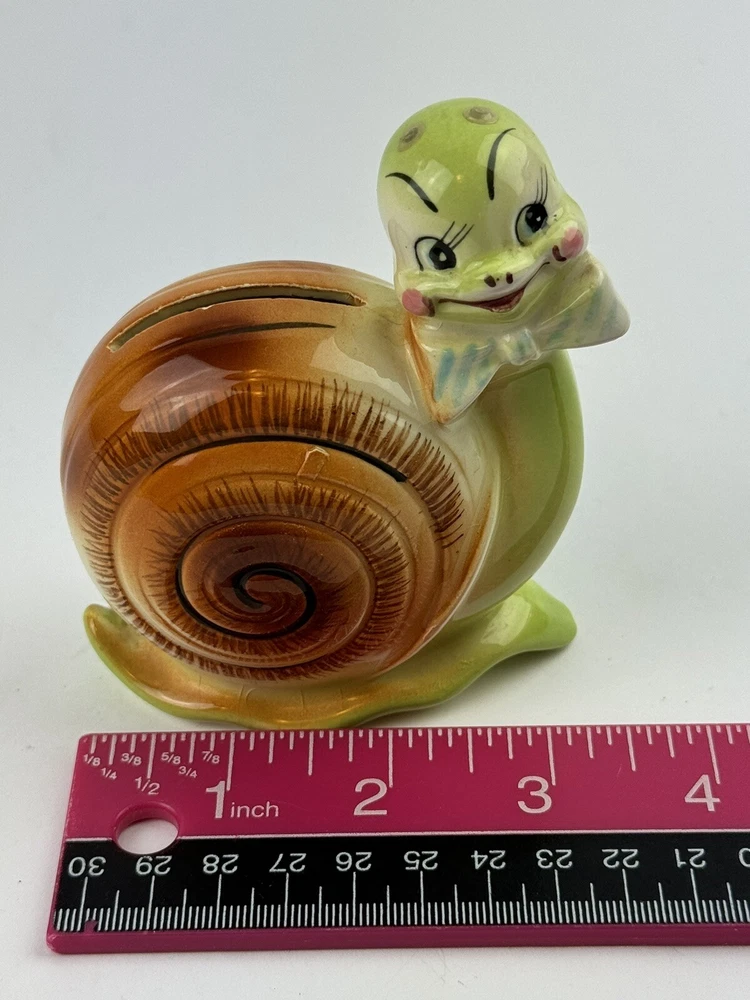 HomeEnesco Snappy Snail Coin Bank Figurine Japan Collectible READ Vintage