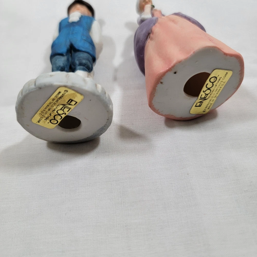 This Enesco Williamsburg Village Figurines set features a charming colonial couple, a man and a woman, both beautifully crafted from porcelain material with a matte finish. The figurines come from Taiwan and are part of the Enesco collection, perfect for collectors of all occasions. The multicolor characters are dressed in colonial attire and are ideal for adding a touch of history to any decor. These figurines are perfect for adults and make a great addition to any collection. The Enesco brand is well-known for its quality and attention to detail, making this set a must-have for any collector.