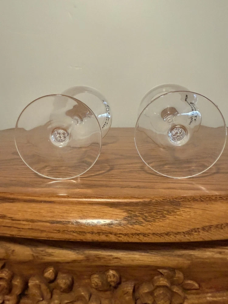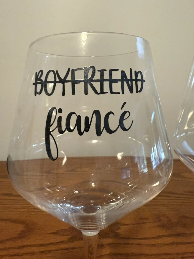 Celebrate your special moment with this hand-made wine glass set, perfect for engagement parties or a romantic dinner. The clear glasses are adorned with intricate designs, making them a unique addition to your drinkware collection. These glasses are made of high-quality glass material, ensuring durability and longevity. This set includes two glasses, perfect for sharing a bottle of wine or two. The glasses are designed for easy drinking and are suitable for any occasion. They are an excellent choice for those who appreciate the beauty and elegance of hand-made glassware. Add a touch of sophistication to your special occasion with these exquisite wine glasses.