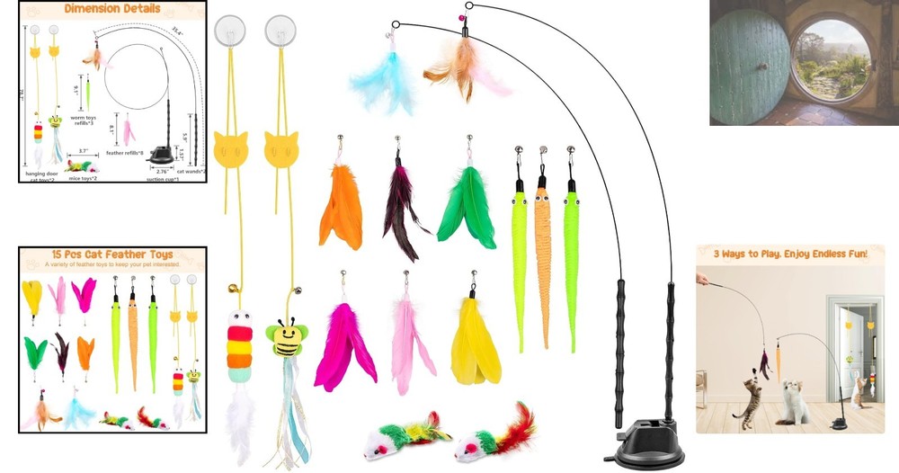 Engaging Feather Cat Wand Toy Set: 15 Pieces for Indoor Play & Exercise ‹ › ‹ › ‹ › ‹ › ‹ › ‹ › ‹ › ‹ › ‹ › Engaging Feather Cat Wand Toy Set Transform your indoor playtime into a delightful adventure with our 15-piece Feather Cat Wand Toy Set, specially designed to keep your feline friend entertained and active! Features: Two Play Modes: - Suction Cup Cat Wand and Hanging Toy for independent play while you're away, ensuring endless fun. - Handheld Cat Feather Wand for interactive play to bond with your cat. Natural Feather Toys: Unleash your cat's primal instincts with our feathered designs, featuring 8 feather refills and 3 cat worm refills with a playful bell. Diverse Toy Selection: Includes 2 door hanging cat toys, 2 cat mice toys, and 2 feather wands for an assortment of play experiences. Durable Quality: Crafted from high-elastic steel wire, our feather wand is designed to withstand enthusiastic play, and can handle up to 22 lbs of tension. Benefits: Encourages physical activity for indoor cats, keeping them fit and healthy. Comfortable handle design allows for extended play sessions without fatigue. Lightweight wand (0.53 oz) ensures ease of use while keeping your cat engaged. Adaptable for various surfaces with suction cup mechanisms, ideal for smooth panels. Elastic rope (78.7 inches) allows for customization according to your cat's play style. Why Choose Our Feather Cat Wand Toy Set? Give your beloved feline the enrichment they crave with our Engaging Feather Cat Wand Toy Set. This thoughtfully curated collection of interactive toys not only caters to their hunting instincts but also creates precious moments of bonding. Made from high-quality materials, our toys guarantee durability and safety, allowing your cat to play freely without worry. Don't let your cat's playful spirit be confined—bring home the Feather Cat Wand Toy Set today and watch them flourish in a world of adventure! Shipping Free & Fast Shipping - We offer free shipping to most of the USA with a normal delivery time of 3-7 days. However, due to the current situation, additional delivery time (up to 3 weeks) may be required for some items. Alternative Carriers - We may use alternative carriers (e.g. USPS, FedEx, UPS, etc.) to ensure your package arrives safely and on time. Due to the use of multiple carriers, we are unable to provide a tracking number automatically. Handling Time - Orders are processed and shipped within 1-2 business days of receiving cleared payment. Shipping Restrictions - Shipping to Alaska, Hawaii, Puerto Rico, Guam, and other US territories may incur shipping charges or delivery restrictions. Please contact us before ordering, or your order can be refunded/cancelled. State Restrictions - There may be restrictions based on your state of purchase. For example, certain items may not be shipped to California due to state regulations. Contact for Tracking Updates - If you require tracking updates or have any concerns about the delivery of your order, please feel free to contact us, and we will be happy to assist you. Return 30-Day Hassle-Free Returns - We want you to be completely satisfied with your purchase. If you are not, you can return the item within 30 days of receiving it for a full refund or exchange. Easy Return Process - To start a return, simply contact us and we will provide you with a prepaid return shipping label and detailed instructions. Restocking Fee - There are no restocking fees for returns. However, the buyer is responsible for return shipping costs if the return is not due to a seller's error. Refund Processing Time - Refunds will be processed within 5 business days of receiving the returned item in its condition. Payment We accept all major credit cards, PayPal, and Apple Pay for your convenience. Your payment information is secure and encrypted to ensure a safe and seamless transaction. Please complete your payment within 3 days of purchase to avoid any delays in shipping. Feedback Your feedback is extremely important to us. We strive to provide the best products and customer service possible. If you are satisfied with your purchase, please take a moment to leave us a positive review. If you have any concerns or issues with your order, please contact us before leaving negative feedback. We are committed to resolving any problems and ensuring your satisfaction. Contact Us If you have any questions or concerns, please feel free to out to our customer support team. You can contact us through the eBay messaging system. We are available Monday to Friday, 9:00 am to 5:00 pm EST, and we will do our best to respond to your inquiry within 24 hours. Buy it now and enjoy a pleasant shopping experience! Model: Cat Wand Toys MPN: Cat_Wand_Toys Unit Quantity: 1.0 count Features: Contains Catnip,Interactive,Lightweight,Quality Materials,Flexible Usage,Two Play Modes,Durable Design,Comfortable Handle,Includes Multiple Toys,Reusable Suction Cup,Suitable for Indoor Use,Adjustable Rope,Easy to Use Type: Activity Toy