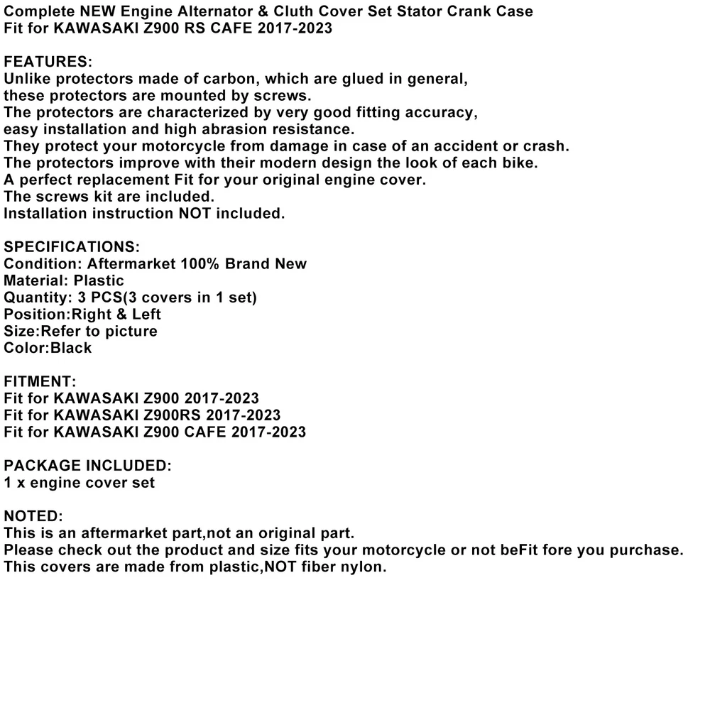 SAFE & SECURE SHOPPING 100% SATISFACTION GUARANTEED FAST SHIPPING You may also like Red Ignition Cover Oil Cap Engine Plug Kit For Honda CRF250R CRF150R 2010-17 19.37 USD 20.61 USD Free shipping 6% off BlK Rear Wheel Axle Nut For Ducati 1098,Panigale,Multistrada,Diavel,75012072A D1 14.61 USD Free shipping Injection Molding Fairing kit Bodywork for Honda ADV 160 ADV160 2023-2024 11# 1268.61 USD Free shipping Rear Tail Side Driver Seat Cover Fairing For Suzuki GSX-S750 2017-2021 White .* 203.61 USD Free shipping Black Frame End Caps Blanking Plugs For Honda CMX500 Rebel 500 2020-2021 12.61 USD Free shipping Engine Guards Slider Stator Engine Cover Black Fit Kawasaki Z900 Rs Cafe 17-23 Product Description Engine Guards Protective Stator Engine Cover For KAWASAKI Z900 RS CAFE 17-23 Features: High class quality and very durable.Good Working Condition. Made of top quality lightweight Aluminum Alloy protecting one of the most vulnerable parts of the bike. A perfect replacement Fit for your original engine cover. Please double check the picture beFit fore you buy it, Easy Installation and No install instructions. SPECIFICATIONS: Condition: Aftermarket 100% Brand New Material: Aluminum Quantity: 2 Pcs(left and right)with bolts as pictures show Position:Left and right Color:Refer to picture Fitment: Fit for KAWASAKI Z900 2017-2023 Fit for KAWASAKI Z900RS 2017-2023 Fit for KAWASAKI Z900 CAFE 2017-2023 PACKAGE INCLUDED: 1x Stator Crankcase Cover Set NOTED: Please check out the product and size fits your motorcycle or not beFit fore you purchase.thanks. About Us Shipping Terms Returns Contact Us About Us English About Item All items sold by us are being described to the best of our abilities, as accurate as possible, and with utmost conscientiousness on our part. However, to avoid any potential oversights, I respectfully request your assistance in helping us to make this a mutually satisfactory transaction by THOROUGHLY reviewing item description and photos, and asking all questions PRIOR TO BIDDING. Customer Satisfactory 1.We back our commitment with superb service, 100% full money back and a customer satisfaction guarantee. 2.I am here and ready to assist you with any questions or concerns you might have before or after the purchase. 3.My goal is to make sure you are a happy customer and pleasant shopping with us. Feedback If you are satisfied with the purchase and our total service, your comment is very important in our business success. Please take a minute to leave us a positive feedback with an overall Detailed Selling Rating (DSR) of 5. Our eBay account setup auto feedback, so eBay system gives you automatically Positive feedback back after your positive feedback left. If you plan to give us a neutral/negative feedback Or open ebay/paypal case, please write to us immediately so that we can do our best to resolve your problem. Shipping English Shipping Terms International Buyers – Please Note: 1. Import duties, taxes and charges are not included in the item price or shipping charges. These charges are the buyer’s responsibility. 2. Please check with your country’s customs office to determine what these additional costs will be prior to bidding/buying. 3.Buyers' Information: We strive our best to provide you the most reliable, affordable way of shipping service. But sometimes international delivery is highly depended on the courier company and local customs/duties. If you do not receive your item on time, please sent us ebay message immediately for further assistance. Thank you for your understanding. Terms English We stand behind everything that we sell and will do everything possible to assure you are satisfied. When you receive your purchase if you are not 100% satisfied, please sent me ebay message and we will do our best to make you happy. If you still want to return your purchase, simply ship the item(s) back to us and we will refund your original purchase price and the original shipping charge. Buyers are responsible for the postal cost of returning the items. We must be notified of the intent to return your item within 30 days of receiving the item. Items returned must be in the same condition that they were received. How to return 1,Please ask us for return address . 2,Shipping back the package . The RMA#(Return Merchant Authorization Number = Your ebay ID) must be clearly written on the return package ,Otherwise the package will be refused. 3,Sent us the return tracking number. 4,All returns will be inspected prior to a credit being issued. Returns English 1:Returns are accepted within 60 days of purchase. 2:All returned items MUST BE in the original packaging. 3:We will be happy to assist you if if any item needs to be returned or replaced 4:Please don't open a return request before contacting us first to solve, many thanks. Contact Us English Sent ebay message in English If you have any questions, our Customer Service staffs welcome you to sent me ebay message. We strive to answer all questions and resolve any problems as quickly as possible. Business Hours: HongKong Time GMT+8:00 Monday-Saturday 9:00-17:00 Copyright © 2022 Tongtool