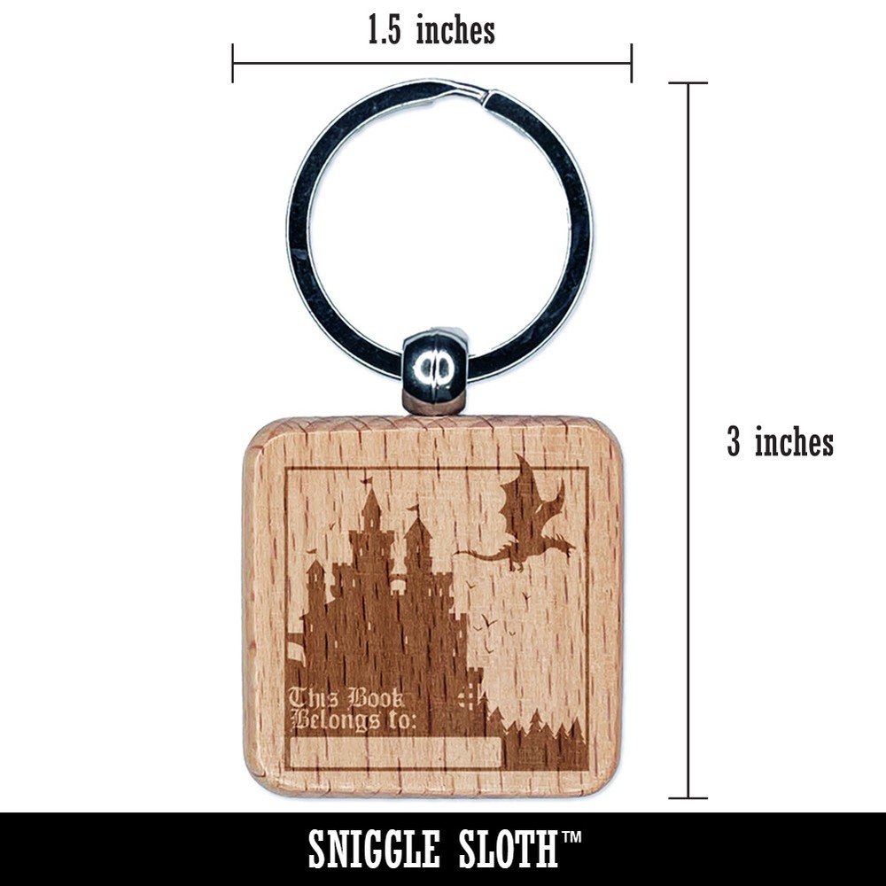 Engraved Dragon Castle This Book Belongs To Wooden Keychain Charm Tag