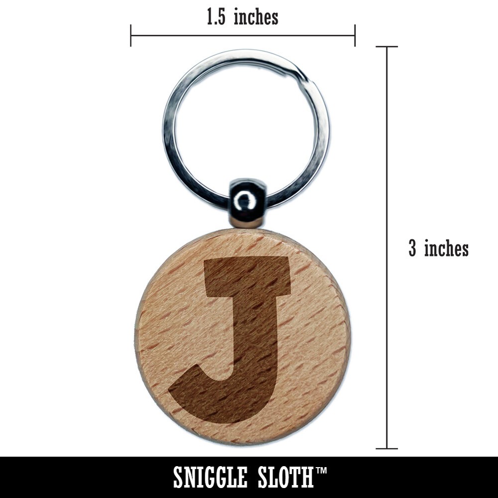 Engraved Wood Keychain with Bold Fun Letter J Uppercase Charm