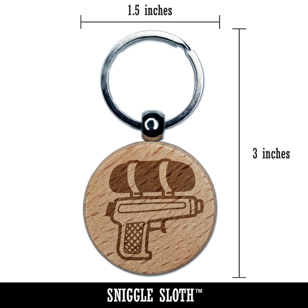 Engraved Wood Water Gun Keychain Toy Pistol Charm