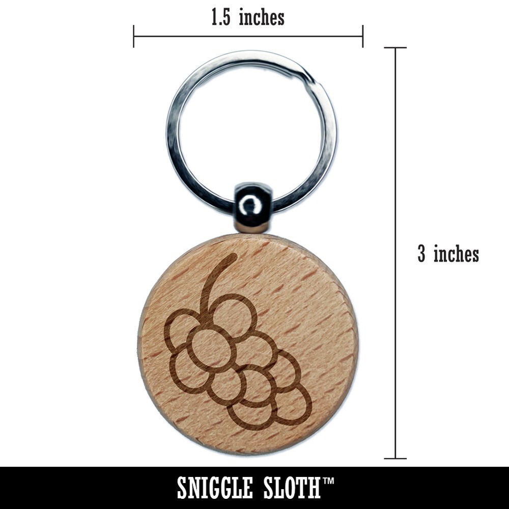 Engraved Wooden Keychain with Grapes Outline Doodle Design