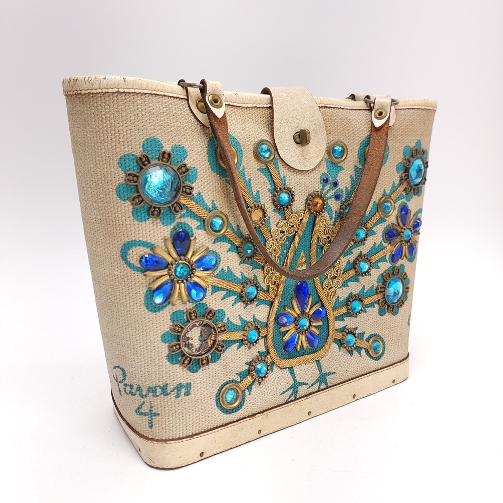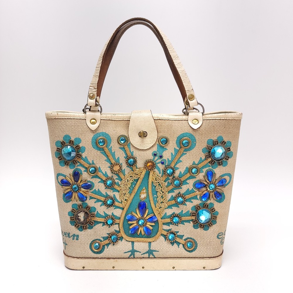 Enid Collins Of Texas 1960’s Wood Box Purse "mira flores" Boho Vintage Handbag