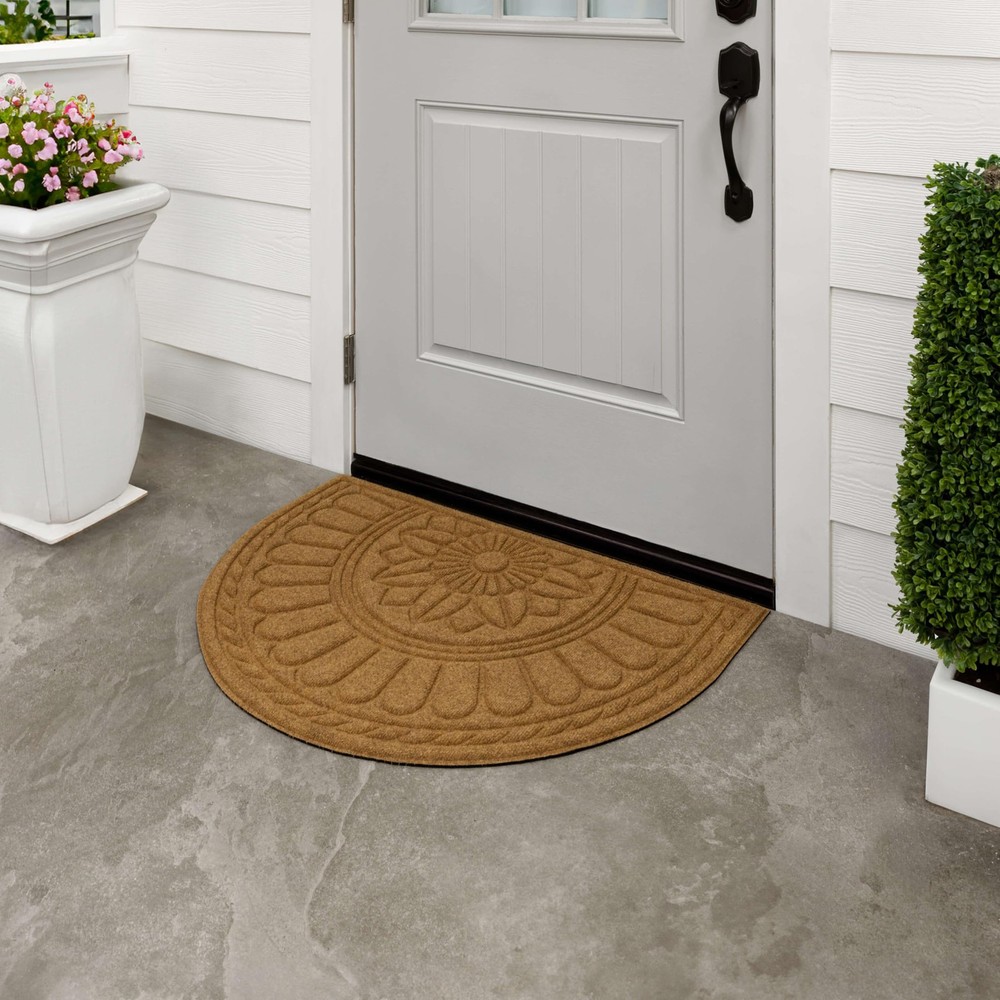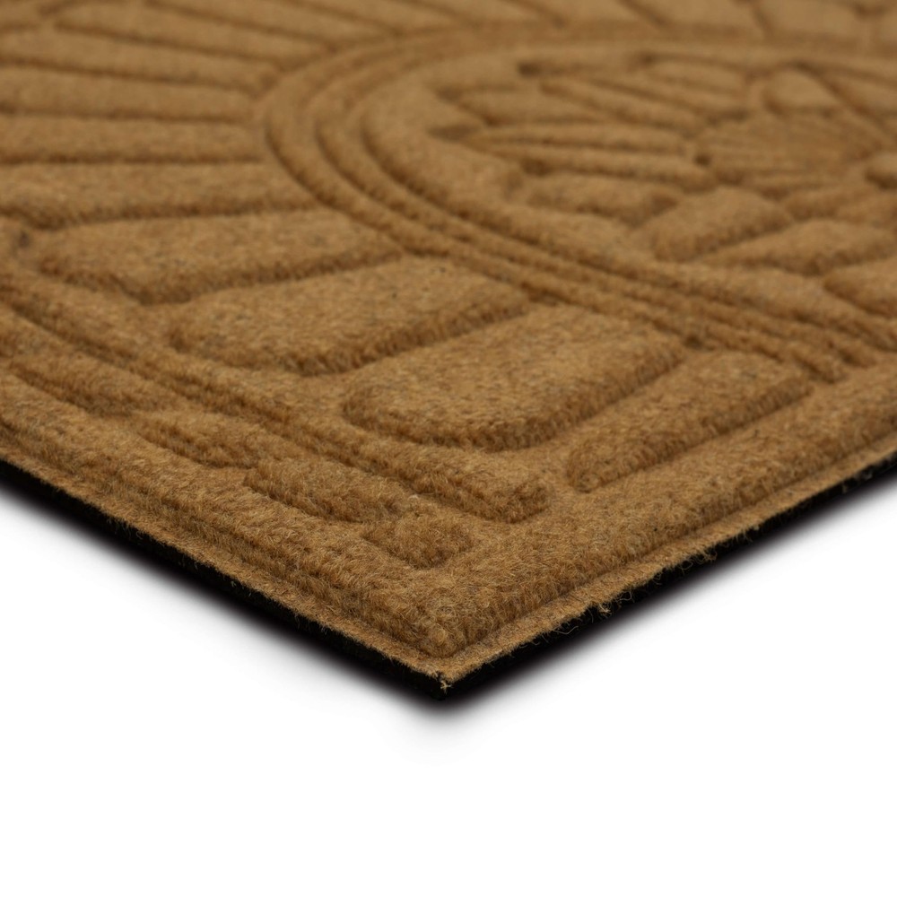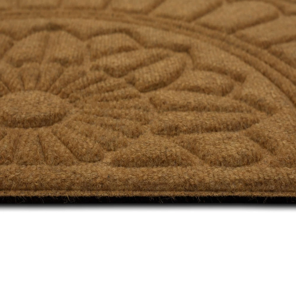 Welcome your guests with the inviting charm of this stylish door mat from , showcasing a functional high/low design in rich color that complements any entryway. Perfect for both indoor and outdoor use, this resilient doormat ensures enduring durability in high-traffic areas and spaces exposed to the elements. Crafted from resilient polyester surface fiber and backed with 100% recycled rubber, this doormat presents an environmentally conscious decor option that is more stylish than ever! The textured polyester surface fiber provides secure traction in all weather conditions, effectively absorbs excess water, and helps remove dirt from shoes before it is tracked indoors. Explore a variety of stylish designs and sizes to bring functional flair to any entryway in your home. DYNAMIC DESIGN: Innovative grooved surface design effectively removes debris from shoes, traps dirt, and channels excess water away before it is brought indoors. EXTRA GRIP: Robust rubber backing provides extra grip to help minimize doormat slipping and sliding on hard surface flooring in high traffic entryways. LOW PROFILE: Low-profile height ensures optimal functionality for any doorway by reducing tripping hazards and entryway obstructions, while allowing doors to open and close freely. EASY CARE & CLEAN: Keep your doormat looking fresh with ease: simply vacuum, sweep, shake out, or rinse off debris with a garden hose, and spot clean when needed; air dry flat. MADE IN THE USA: Proudly made in the USA of U.S. and imported polyester material and recycled rubber ensuring a top-tier sustainable option for every setting.