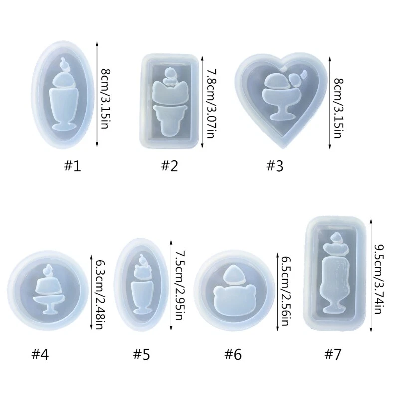 Features: Made from quality silicone, this mold is durable and easy to clean, flexible, reusable, easy to mold and release. Non-sticky, easy to separate, high temperature resistant, easy to clean, environmentally friendly, low carbon, and recyclable. You can add sequins, small dried flower, small accessories and other favorite accessories to make your own unique Multi-purpose epoxy resin mold and silicone mold can be used to make mini ice cream, cake decorations, necklaces earrings jewelry pendant charm such as household ornaments, keychains ornament, backpack pendants, etc. Wonderful gift, suitable for your family and friend DIY unique and meaningful handmade gifts, best gift for DIY lovers. Specifications: Material: Silicone Type: 1, 2, 3, 4, 5, 6, 7 (optional) Size: As Pictures Shown Package Includes: 1x Ice Cream Quicksand Mold note: Please allow 1-2cm errors due to manual measurement. Please allow for slight color differences due to different display resolution.