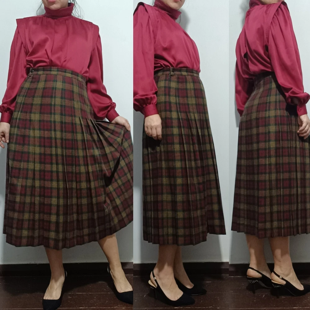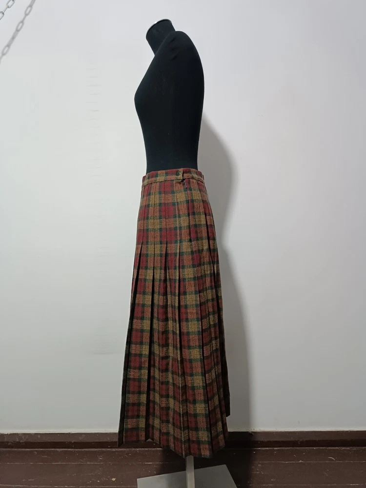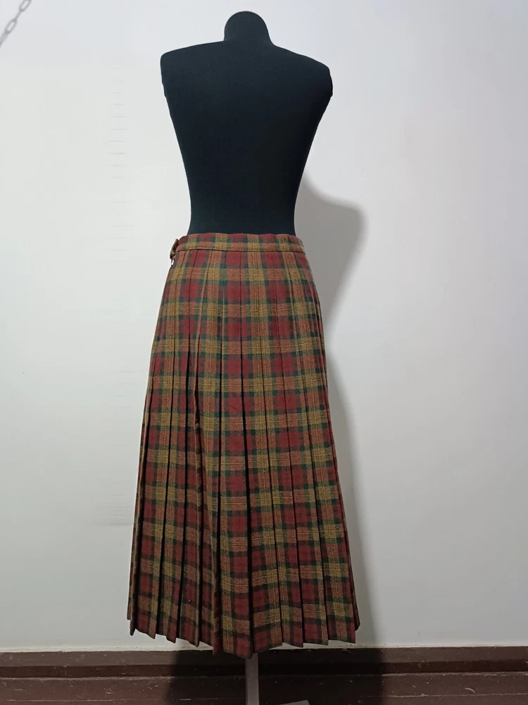 length 80 cm/31,5" width at waist half girth 36 cm/14" width at hips 72 cm/28" 100% virgin wool with quality mark, lining 100% polyester Made in Scotland.