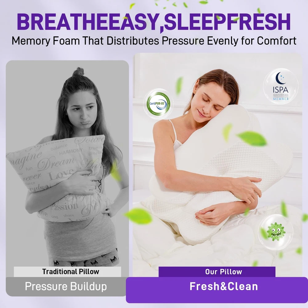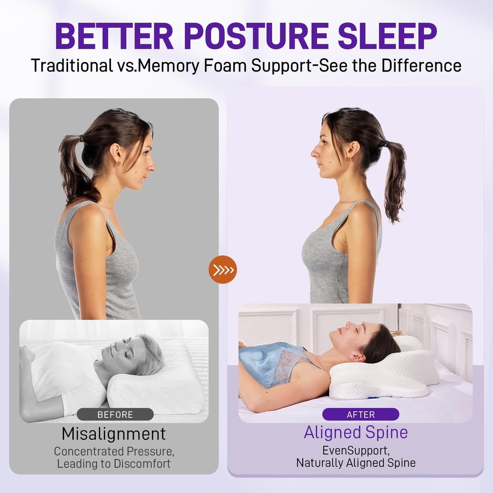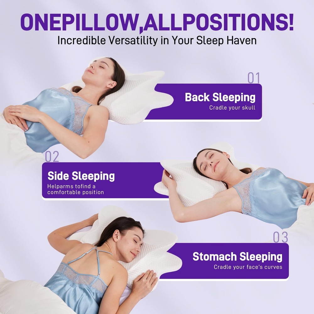 This pillow is a game-changer for neck and shoulder pain! The ergonomic butterfly shape cradles my head perfectly, whether I sleep on my side or back. The hollow design keeps my spine aligned, and the memory foam is just the right firmness—not too hard, not too soft. Waking up without stiffness is amazing. It took a night or two to adjust, but now I can’t sleep without it. Great for travel too! Highly recommend if you want deeper, pain-free rest.