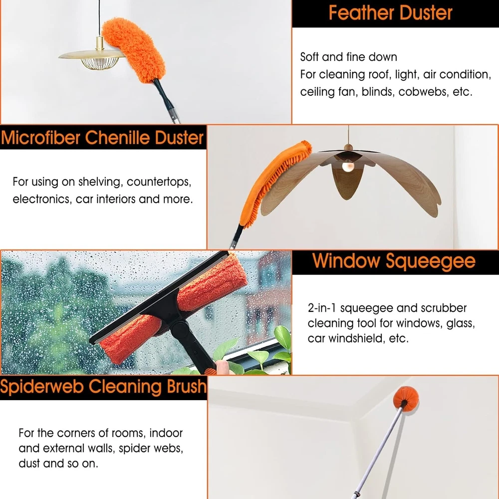 Ergonomic Extendable Dusting Tool Set for Windows & Ceilings - 5 to 20 ft ‹ › ‹ › ‹ › ‹ › ‹ › ‹ › ‹ › ‹ › Ergonomic Extendable Dusting Tool Set for Windows & Ceilings 5 to 20 ft Product Features: Versatile Cleaning Kit: Includes a 5-to-20 foot telescopic pole, window squeegee and washer combo, cobweb duster, microfiber feather duster, and microfiber ceiling fan duster. Durable Extension Pole: Designed to provide stability, the 5- to 20-foot pole is made from sturdy materials, ensuring it does not bend under pressure. Comfortable Grip: The telescopic wand features a soft rubber wrap at the bottom, offering enhanced comfort and grip during cleaning. Effective Cobweb Duster: Unique dome design allows for easy removal of cobwebs, dust and dirt from high or hard-to-reach places. Efficient Window Scrubber: Cleans windows seamlessly, with a handle rotation locking mechanism to tackle dirt from any angle. Soft Microfiber Dusters: The delicate fibers protect your surfaces while effectively capturing dust and dirt, keeping your home spotless. Adaptable Ceiling Fan Duster: Freely bends to reach every corner of high ceiling fans and maintain the desired dusting shape for maximum coverage. Benefits: Maximize your cleaning efficiency with a multi-purpose dusting tool set. Create a spotless home with the ergonomic design that eases cleaning in hard-to-reach places. Comfortable handling that allows for extended cleaning without fatigue. Perfect for maintaining cleanliness in high ceilings, tall windows and more. Discover a cleaner living space with each usage, thanks to the premium materials that enhance performance. Commitment to quality: Regular optimizations and improvements ensure top-notch products. Why Choose Our Ergonomic Extendable Dusting Tool Set? Transform your cleaning routine with our Ergonomic Extendable Dusting Tool Set. Crafted for efficiency, each tool in this set is designed to reach heights from 5 to 20 feet while ensuring your surfaces remain scratch-free and dust-free. The combination of durable materials and thoughtful design creates an experience that not only simplifies cleaning but also ensures lasting results. Your moments spent dusting will be transformed into a pleasant task rather than a chore. Choose the hassle-free solution to a cleaner home today! Shipping Free & Fast Shipping - We offer free shipping to most of the USA with a normal delivery time of 3-7 days. However, due to the current situation, additional delivery time (up to 3 weeks) may be required for some items. Alternative Carriers - We may use alternative carriers (e.g. USPS, FedEx, UPS, etc.) to ensure your package arrives safely and on time. Due to the use of multiple carriers, we are unable to provide a tracking number automatically. Handling Time - Orders are processed and shipped within 1-2 business days of receiving cleared payment. Shipping Restrictions - Shipping to Alaska, Hawaii, Puerto Rico, Guam, and other US territories may incur shipping charges or delivery restrictions. Please contact us before ordering, or your order can be refunded/cancelled. State Restrictions - There may be restrictions based on your state of purchase. For example, certain items may not be shipped to California due to state regulations. Contact for Tracking Updates - If you require tracking updates or have any concerns about the delivery of your order, please feel free to contact us, and we will be happy to assist you. Return 30-Day Hassle-Free Returns - We want you to be completely satisfied with your purchase. If you are not, you can return the item within 30 days of receiving it for a full refund or exchange. Easy Return Process - To start a return, simply contact us and we will provide you with a prepaid return shipping label and detailed instructions. Restocking Fee - There are no restocking fees for returns. However, the buyer is responsible for return shipping costs if the return is not due to a seller's error. Refund Processing Time - Refunds will be processed within 5 business days of receiving the returned item in its original condition. Payment We accept all major credit cards, PayPal, and Apple Pay for your convenience. Your payment information is secure and encrypted to ensure a safe and seamless transaction. Please complete your payment within 3 days of purchase to avoid any delays in shipping. Feedback Your feedback is extremely important to us. We strive to provide the best products and customer service possible. If you are satisfied with your purchase, please take a moment to leave us a positive review. If you have any concerns or issues with your order, please contact us before leaving negative feedback. We are committed to resolving any problems and ensuring your satisfaction. Contact Us If you have any questions or concerns, please feel free to reach out to our customer support team. You can contact us through the eBay messaging system. We are available Monday to Friday, 9:00 am to 5:00 pm EST, and we will do our best to respond to your inquiry within 24 hours. Buy it now and enjoy a pleasant shopping experience! UPC: Not Set Item Height: Duster Cleaning Kit Item Length: Duster Cleaning Kit Item Width: Duster Cleaning Kit Volume: 58 x 4 x 3.5 inches Unit Quantity: 1 Features: Ergonomic Handle,Telescopic Handle,Extension Pole,Universal Joint,Window Squeegee,Microfiber Duster,Bendable,Soft Rubber Grip Labels & Certifications: Not Set Brand: Unbranded Type: Duster Cleaning Kit For: Indoor Form: Tool Number in Pack: 1 Scent: Scent Free Capacity: 1 MPN: Not Set Item Weight: 5.79 pounds Country/Region of Manufacture: Not Set Theme: Not Set Unit Type: lb Personalize: Not Set