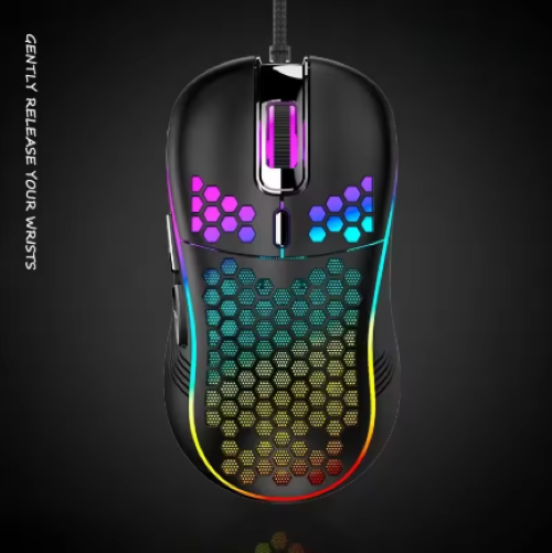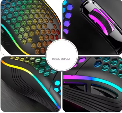 Elevate your gaming experience with the Honeycomb Designed Gaming Mouse, a perfect fusion of ergonomics and precision. Featuring a sleek black exterior, this wired USB mouse is engineered to cater to the demands of serious gamers, offering swift and responsive movements that can make all the difference in your gameplay.With its distinctive honeycomb pattern, the mouse combines style with functionality, providing not only a comfortable grip but also a modern aesthetic to your gaming setup. It's designed to be a reliable companion for long gaming sessions, ensuring consistent performance and seamless integration with your system.